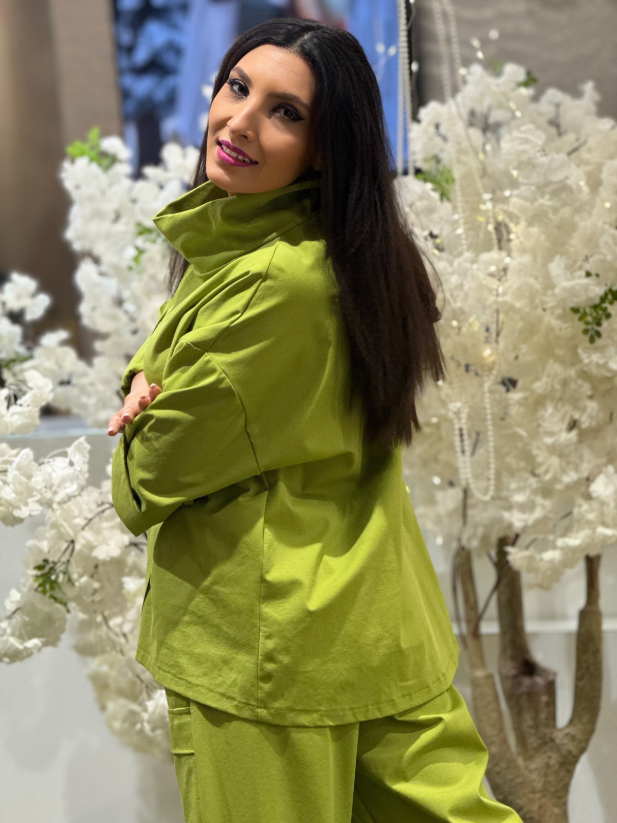 O poți purta cu o pereche de pantaloni eleganți sau cu jeans pentru o ținută casual-chic.