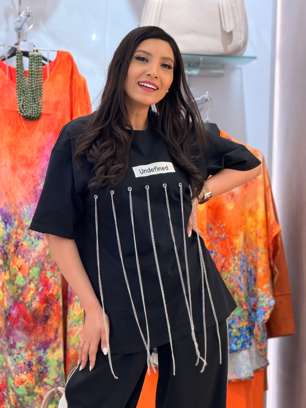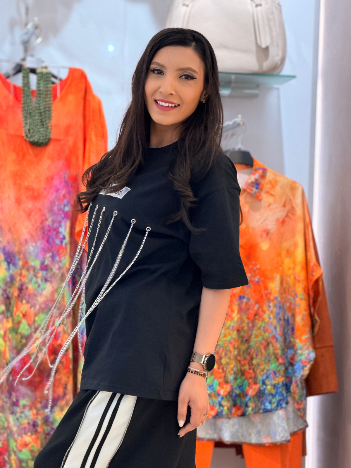 • Design modern cu lănțișoare atrăgătoare.