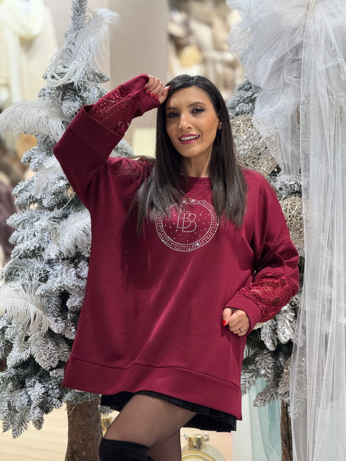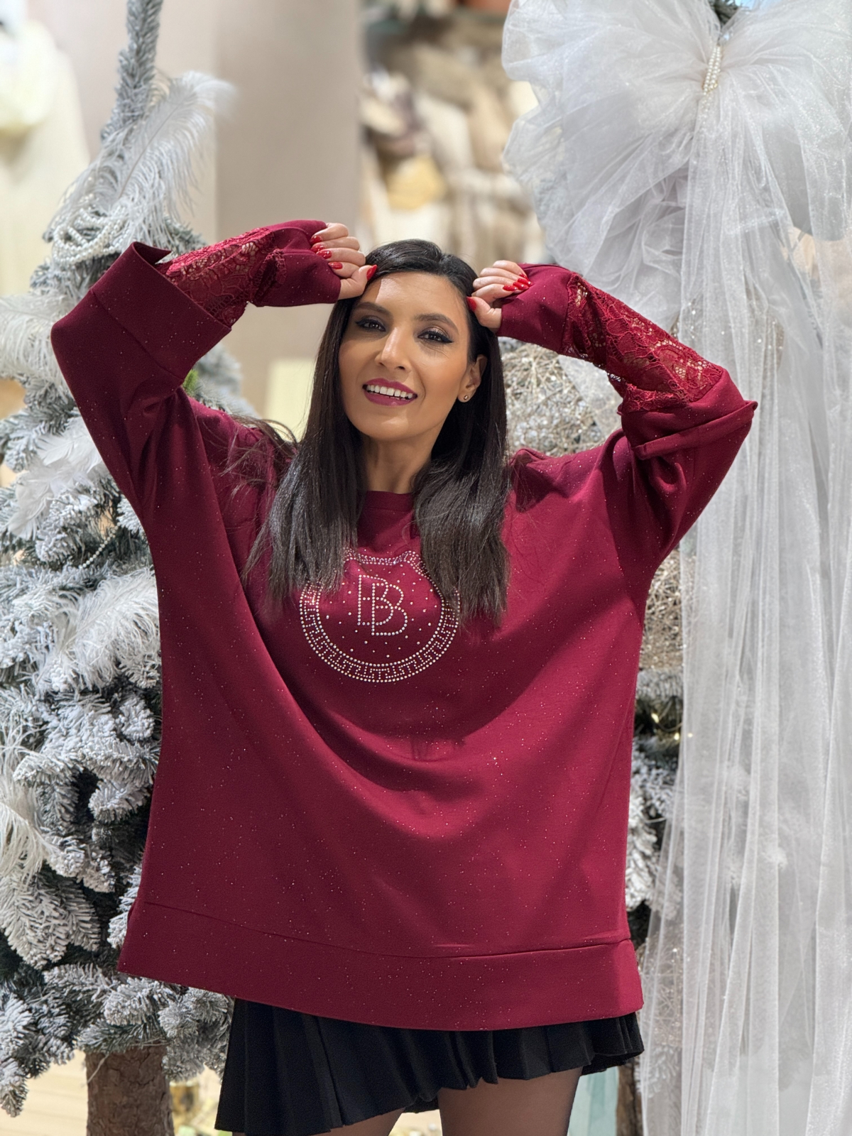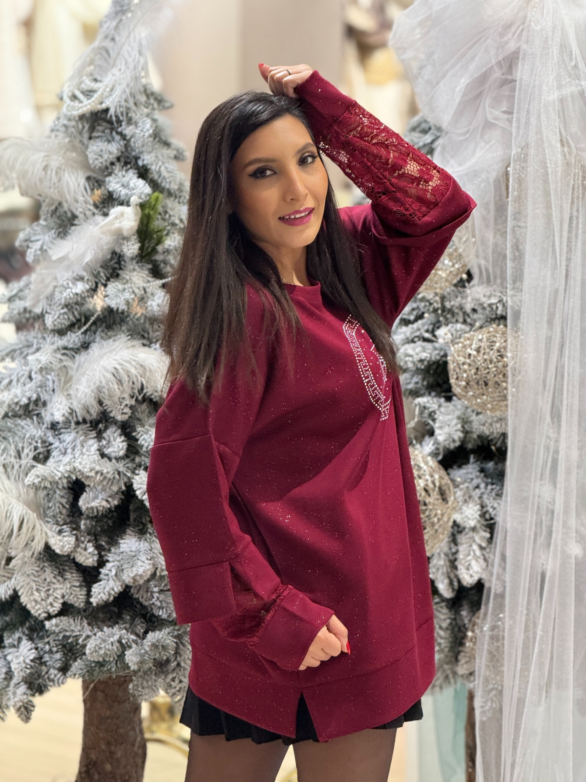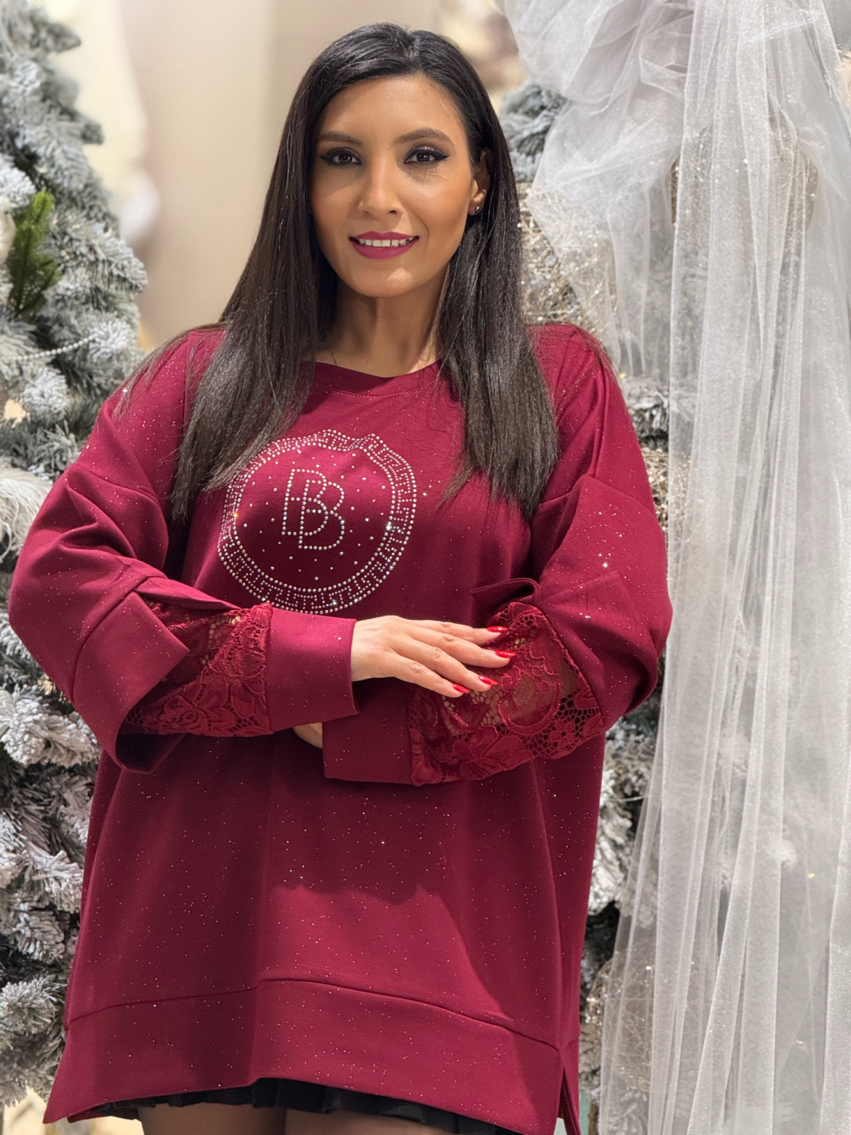 Bluza cu maneca din dantela si imprimeu cerc cu pietricele
