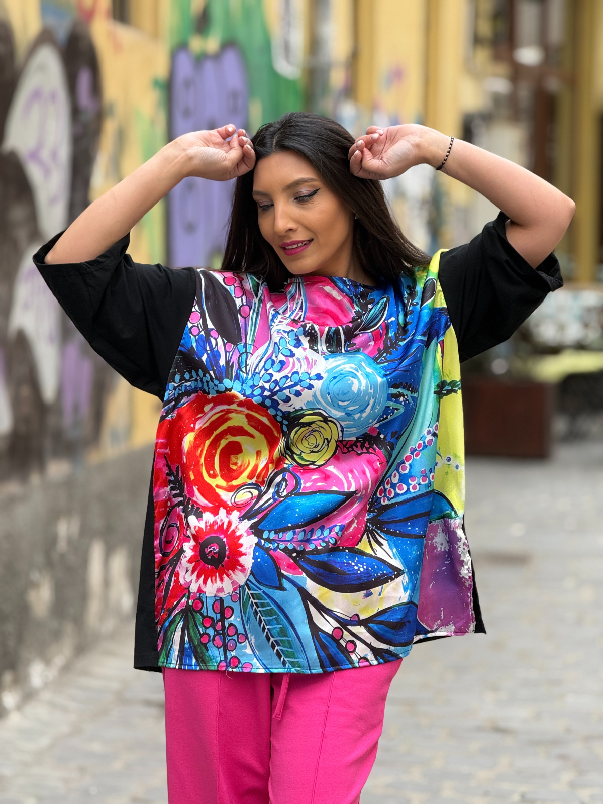 • Bluza cu imprimeu colorat vibrant.