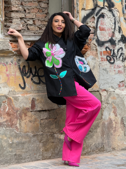 Designul floral captivant și paietele delicate aduc un plus de feminitate. Croiala sa te va face să te simți încrezătoare și lejeră.