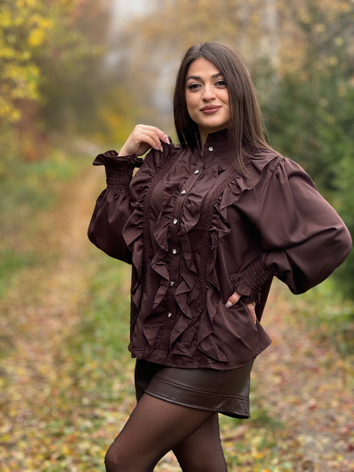 Camasa cu volane decorative si dantela
