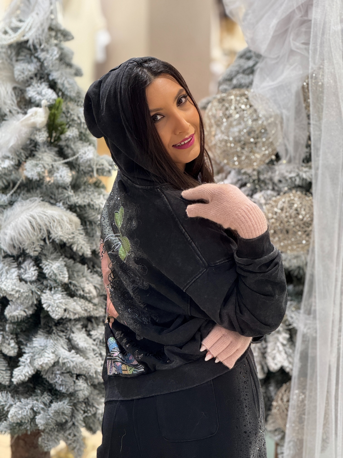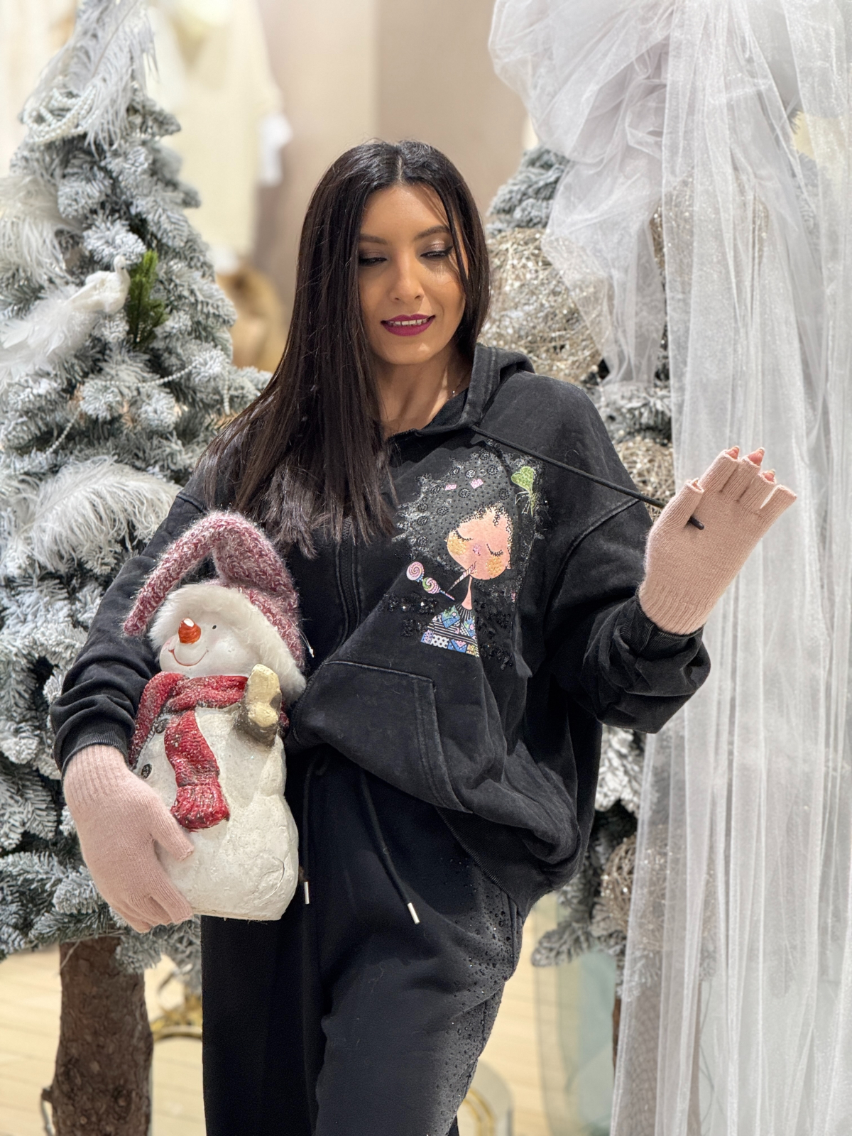 Jachetă cu fermoar cu fetiță roz – practică, călduroasă și cu un detaliu grafic delicat