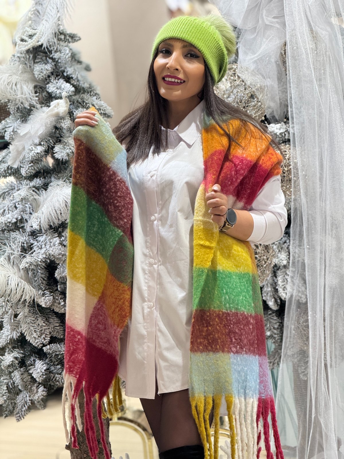 Esarfa in carouri cu franjuri