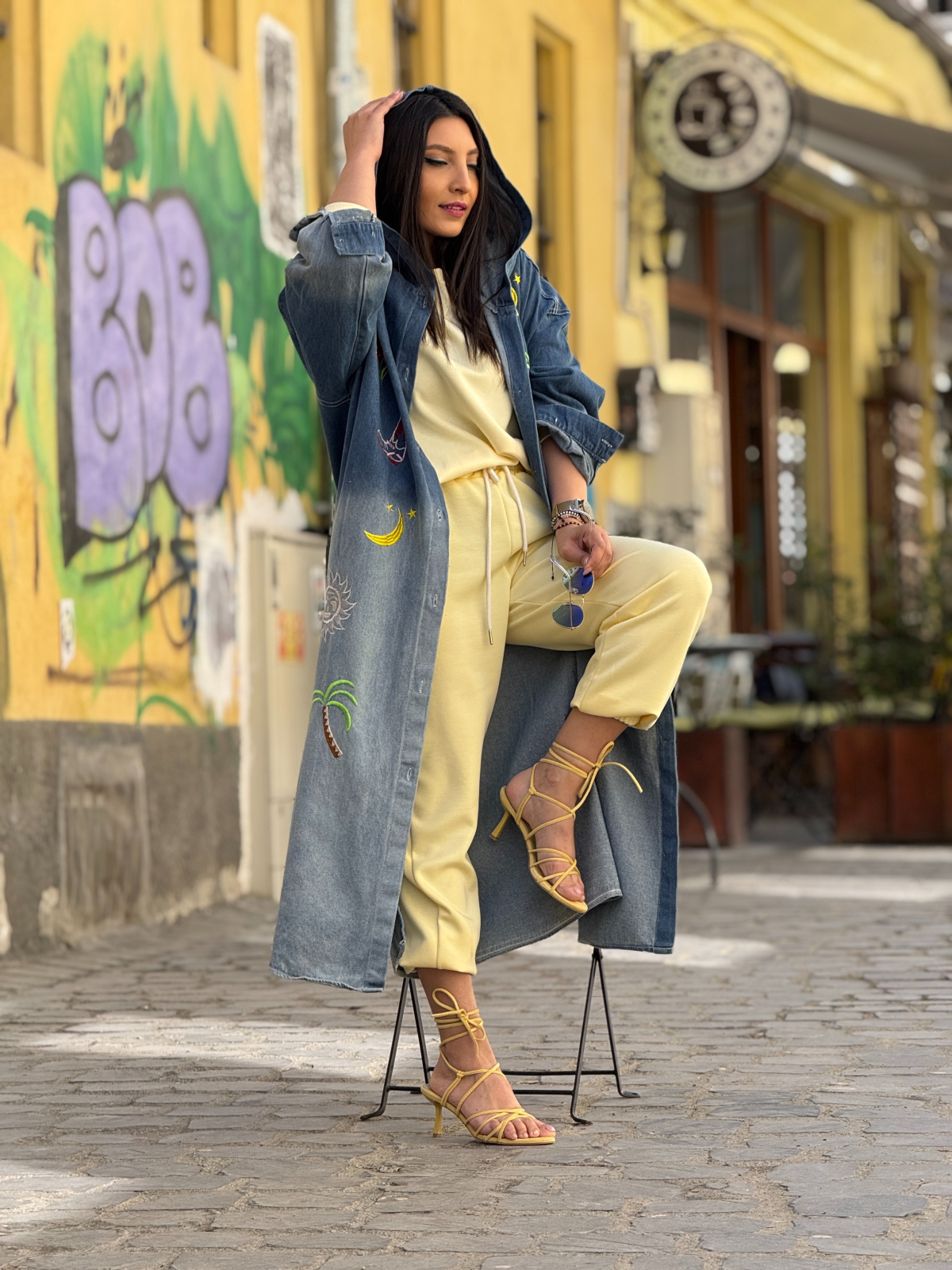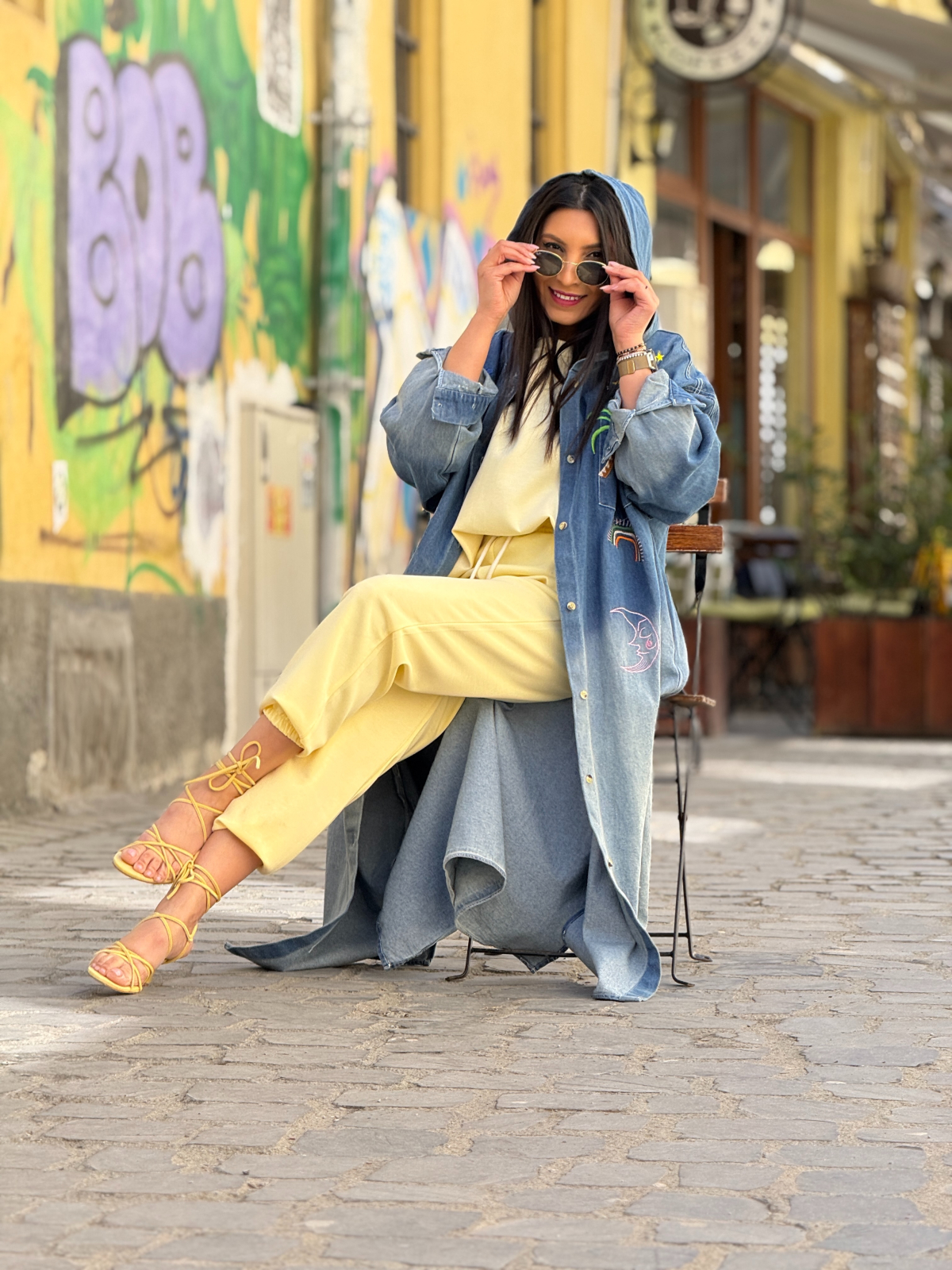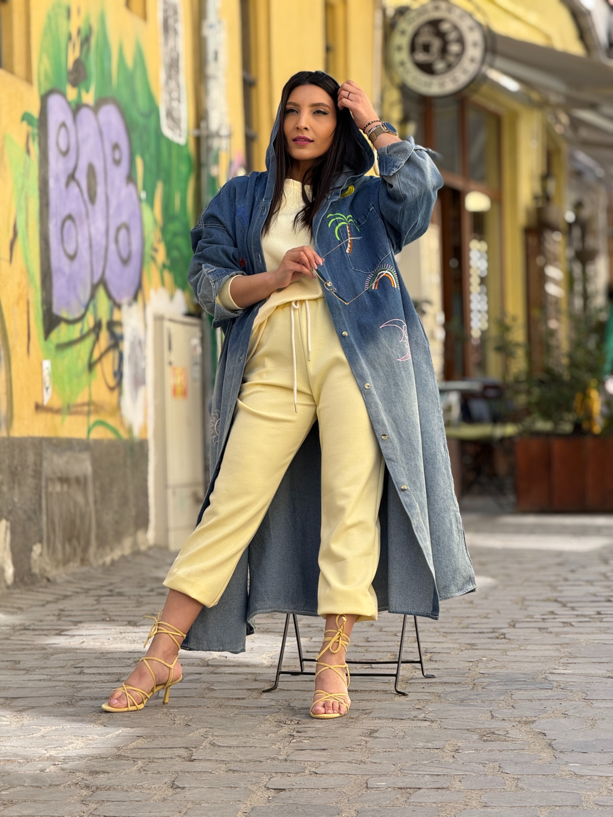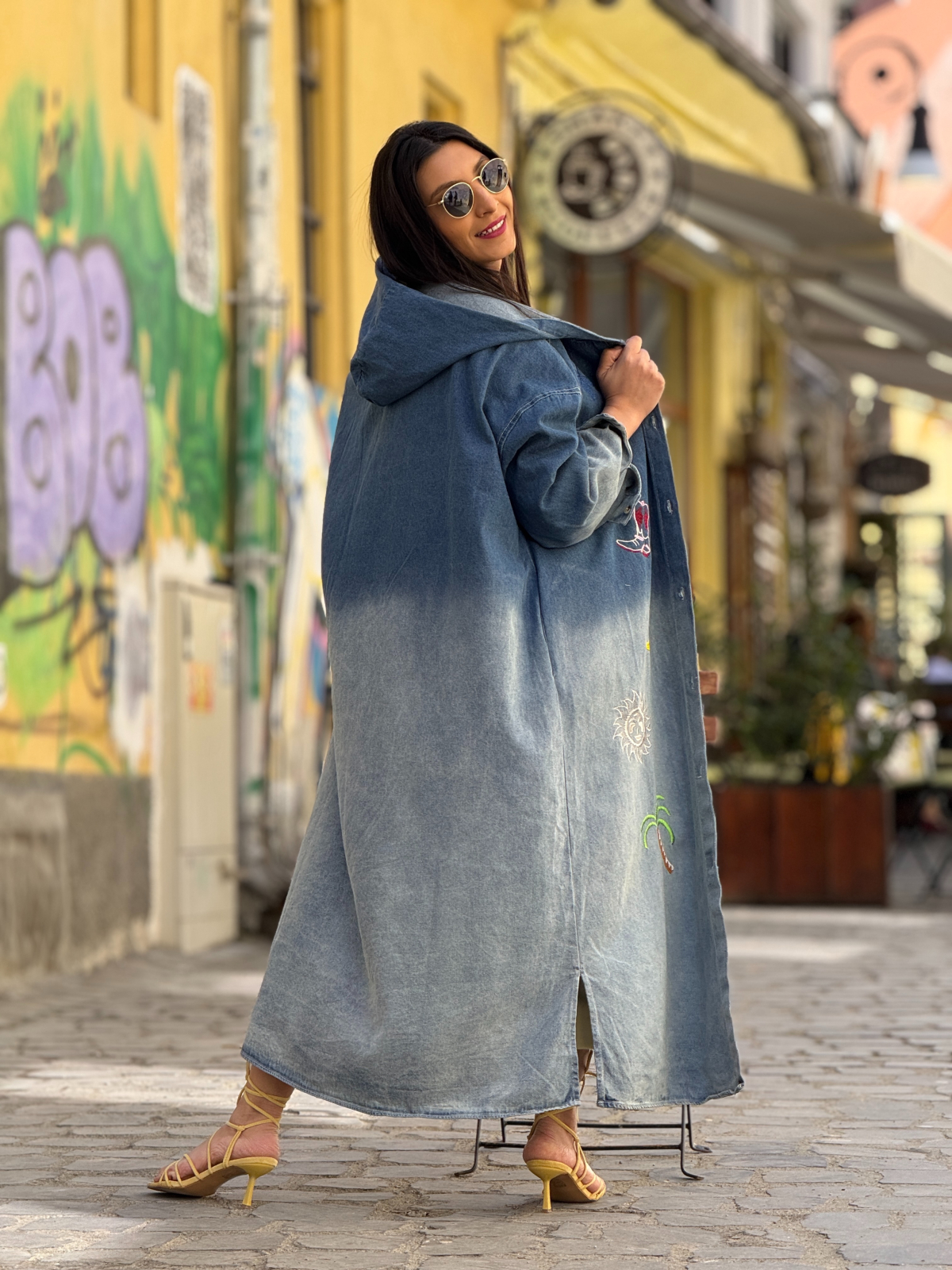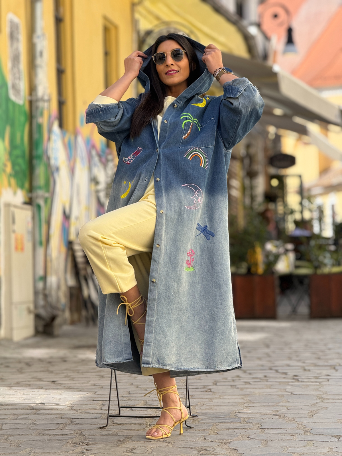 Jacheta lungă cu nasturi și glugă, cu detalii brodate, îți oferă o stare de confort și siguranță în orice zi. Este perfectă pentru a te simți liberă și încrezătoare.