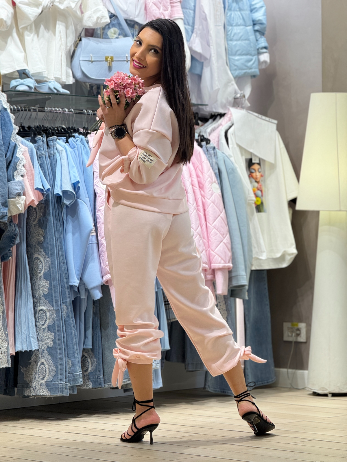 Compleul cu fundiță la manecă îți aduce o stare de fericire și libertate. Este potrivit pentru orice ocazie și te va face să te simți încrezătoare și rafinată.