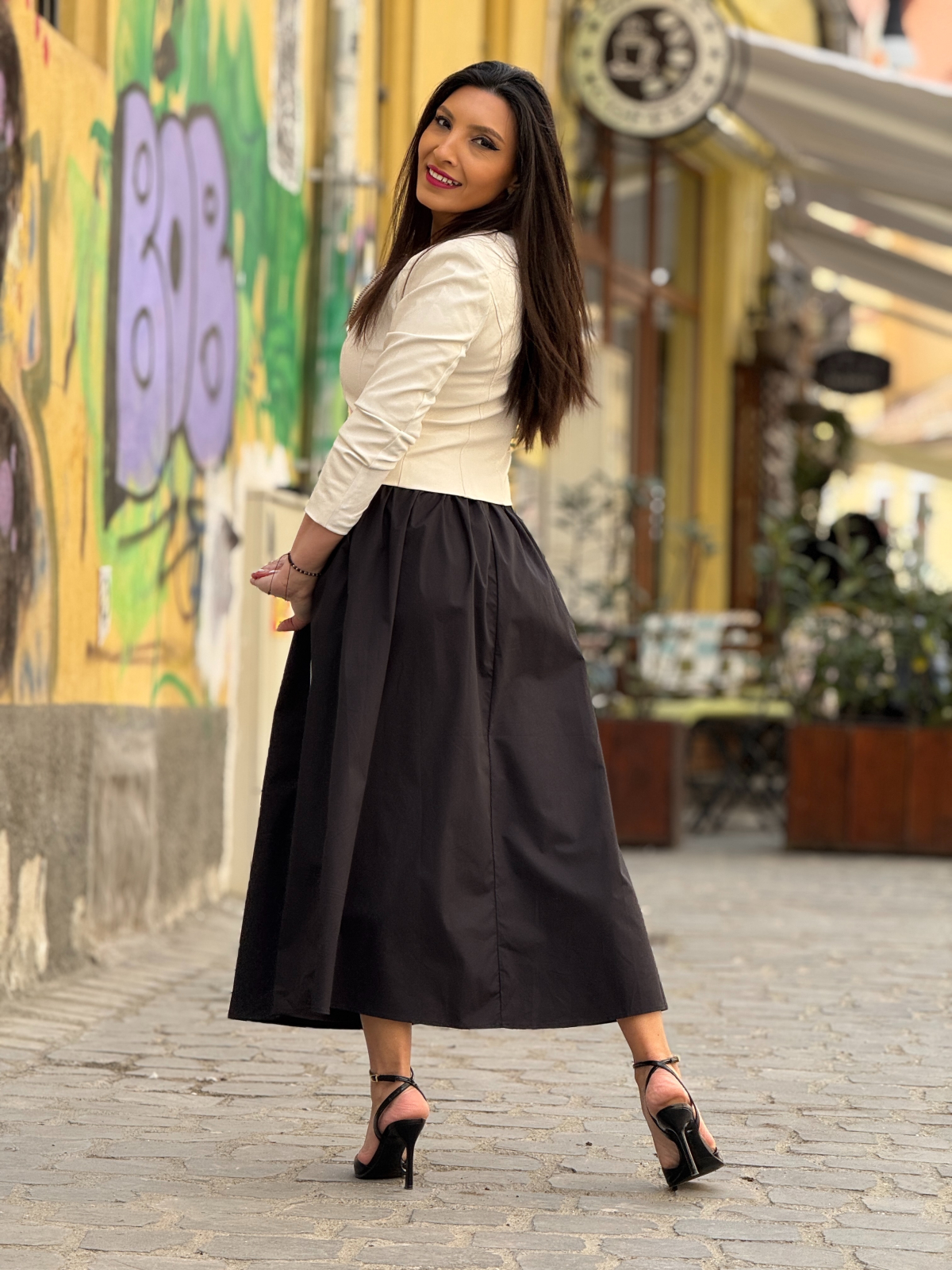 Fusta este gândită pentru a-ți flata silueta, oferindu-ți un aspect sofisticat și elegant. Designul său unic o face perfectă pentru diverse ocazii, de la întâlniri business la petreceri de seară.