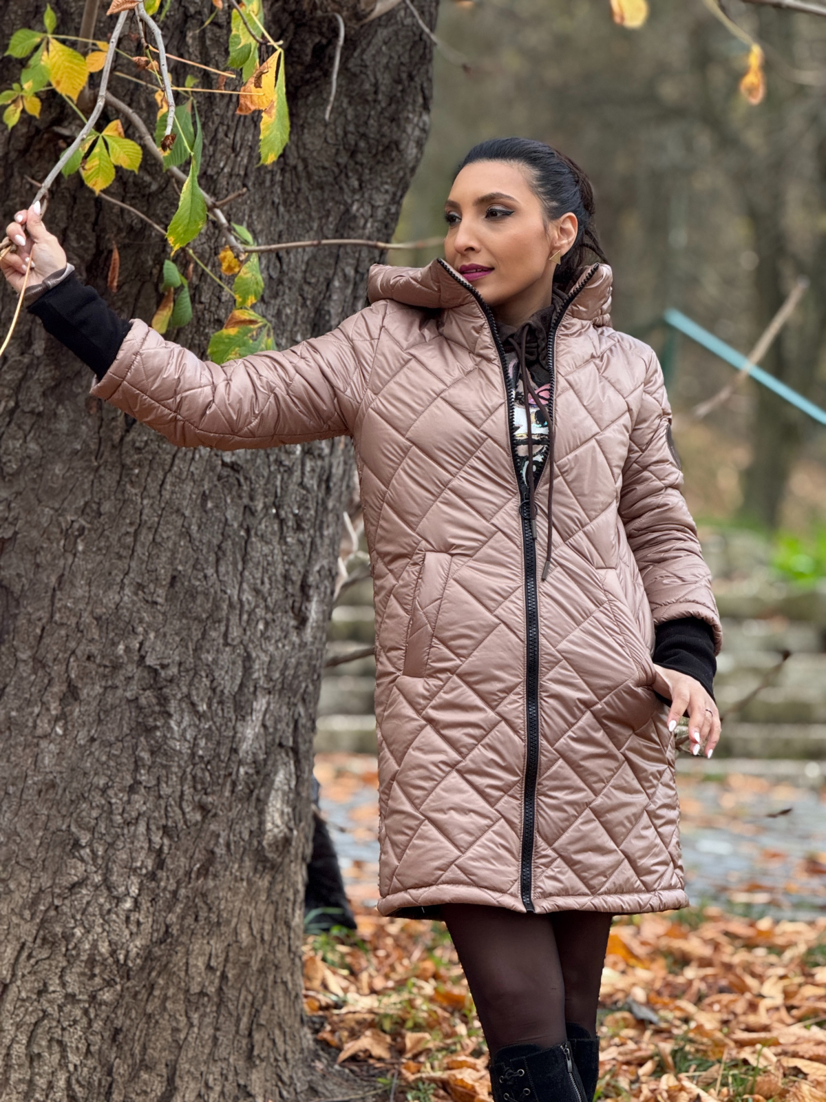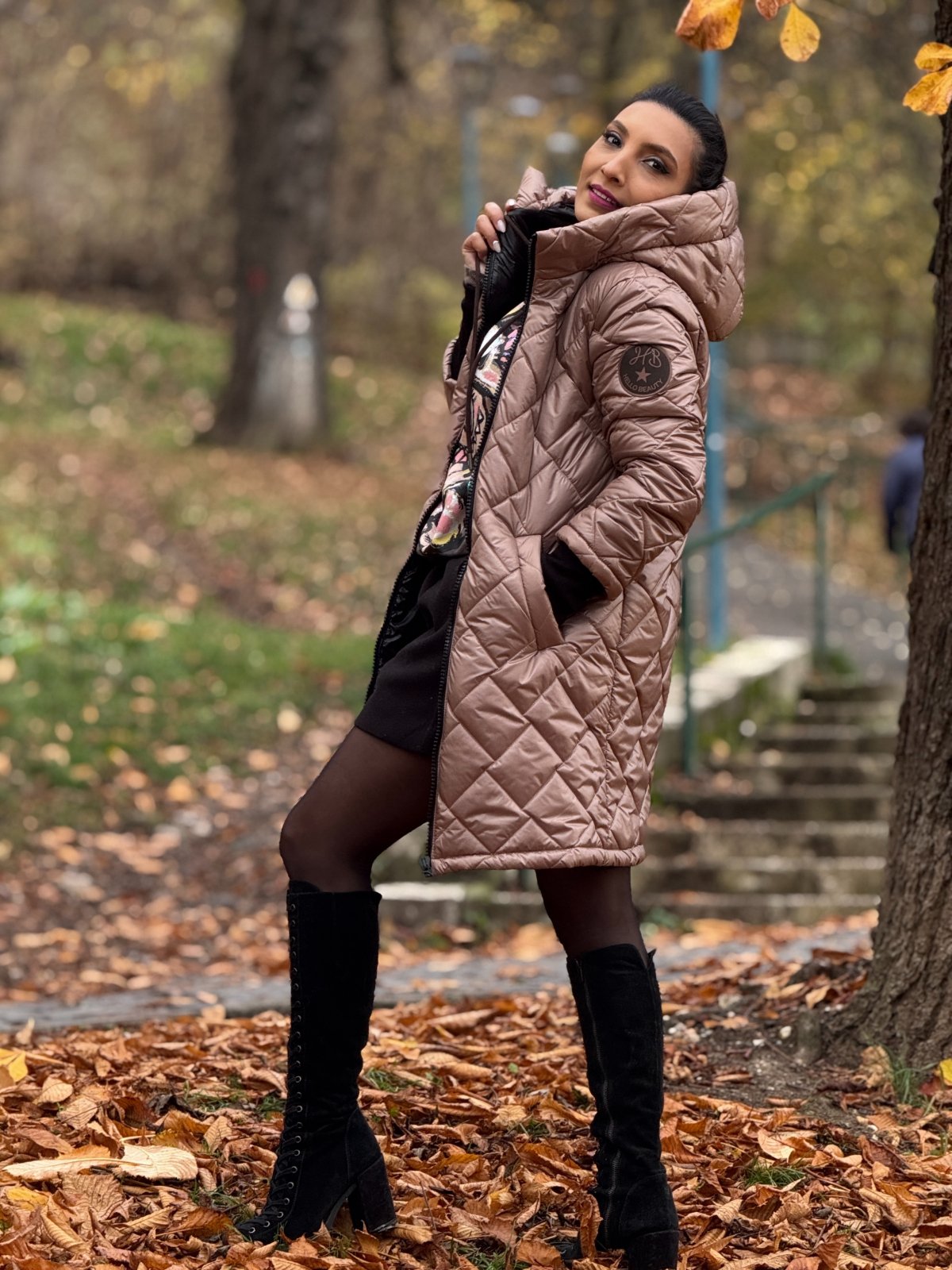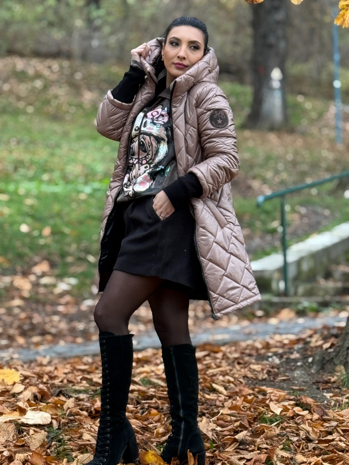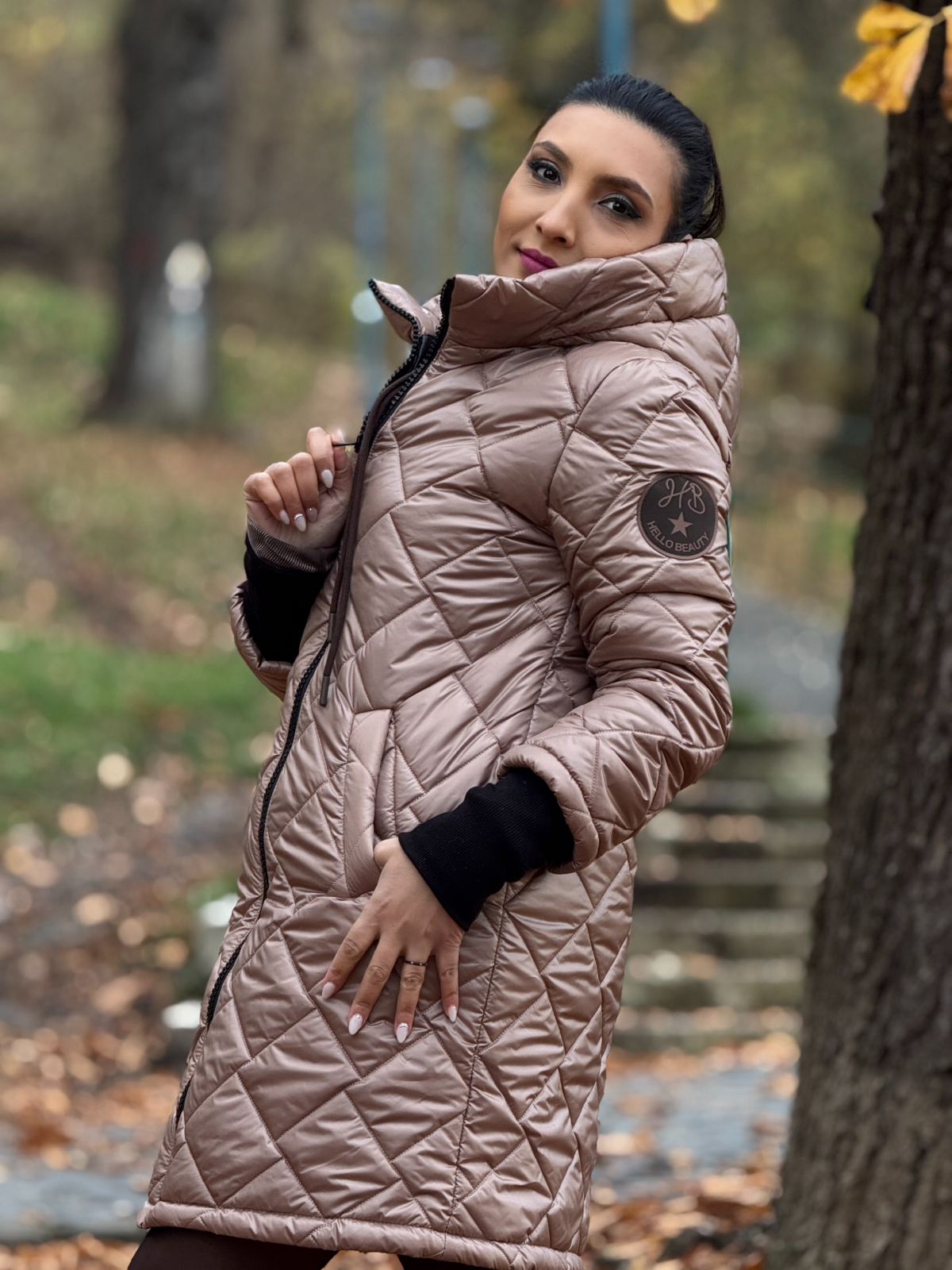 Geaca cu emblemă lungă este o piesă statement, creată pentru a combina stilul urban cu protecția necesară în sezonul rece.