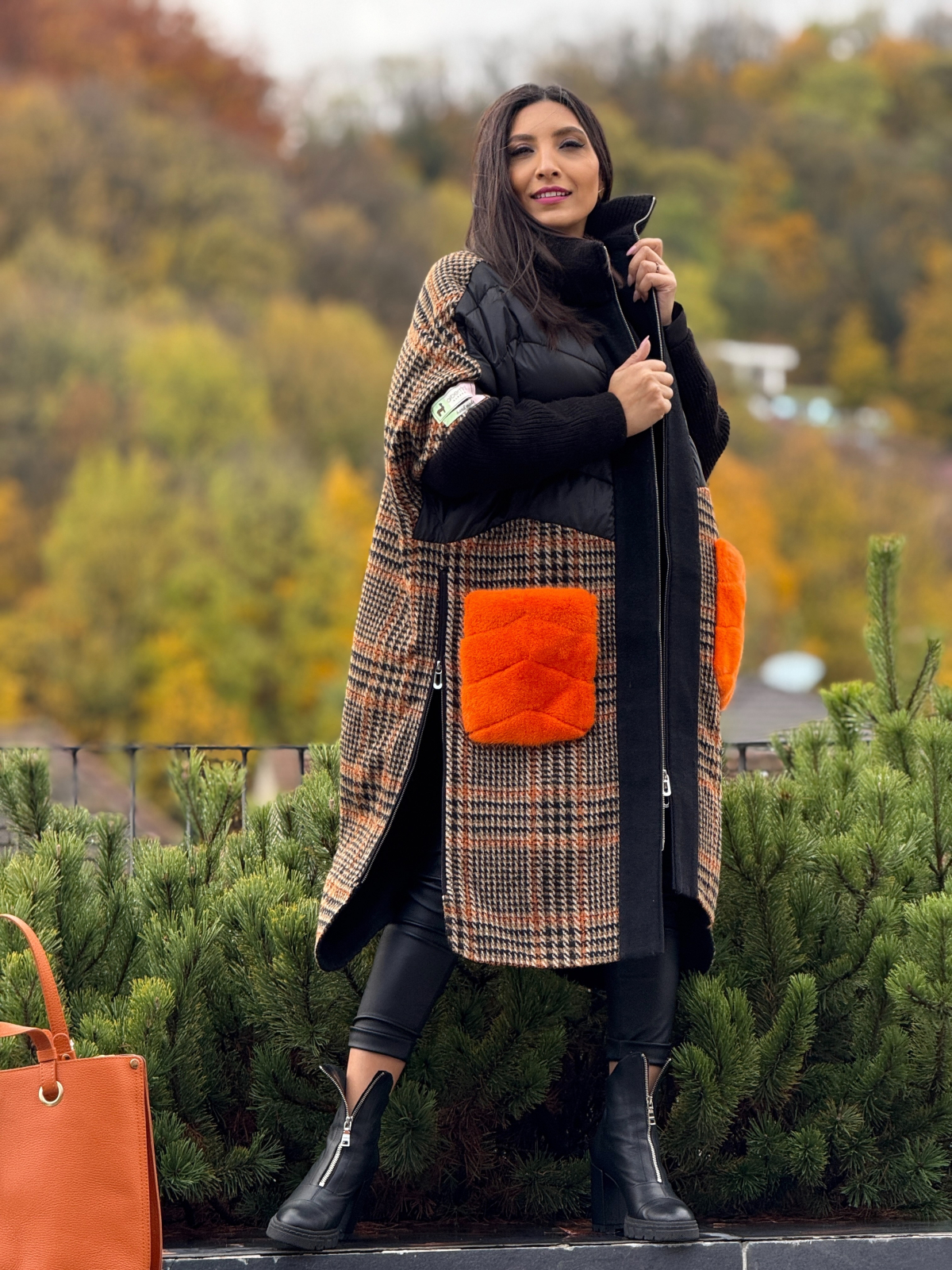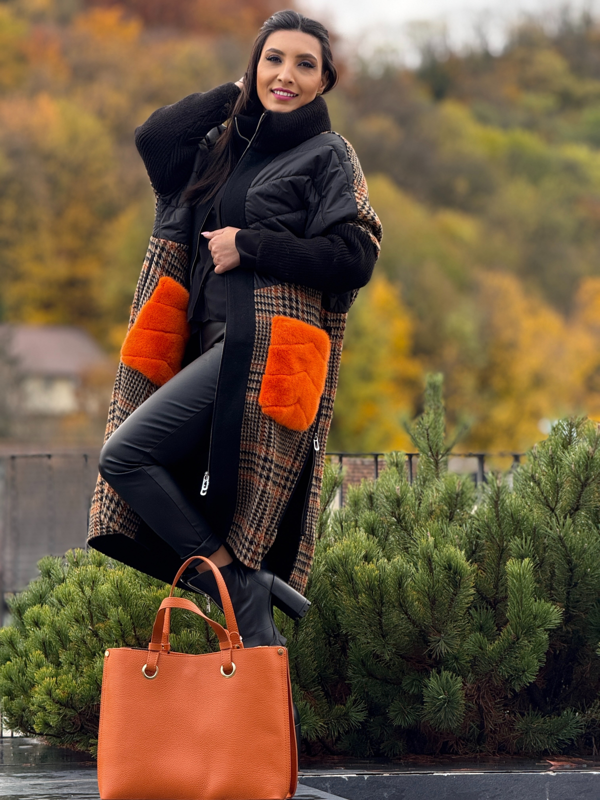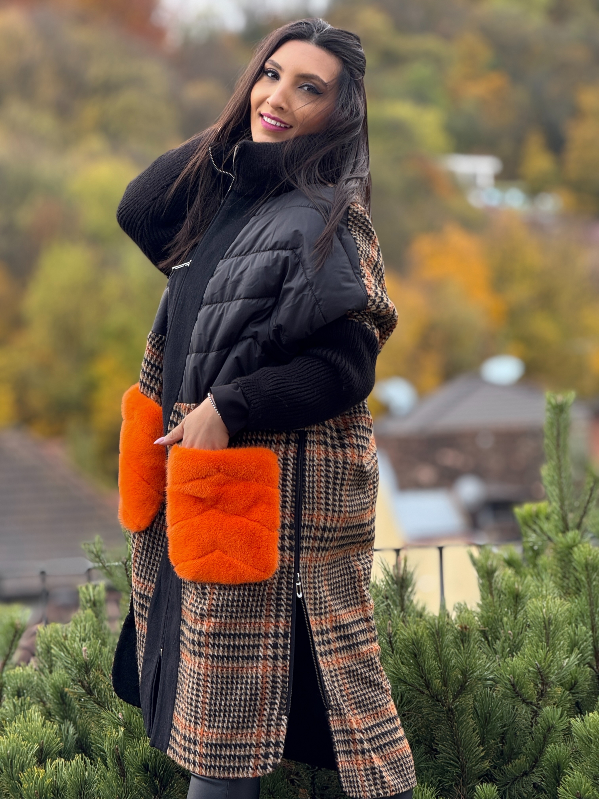 Haina din alpaca cu buzunare supradimensionate din blana naturala