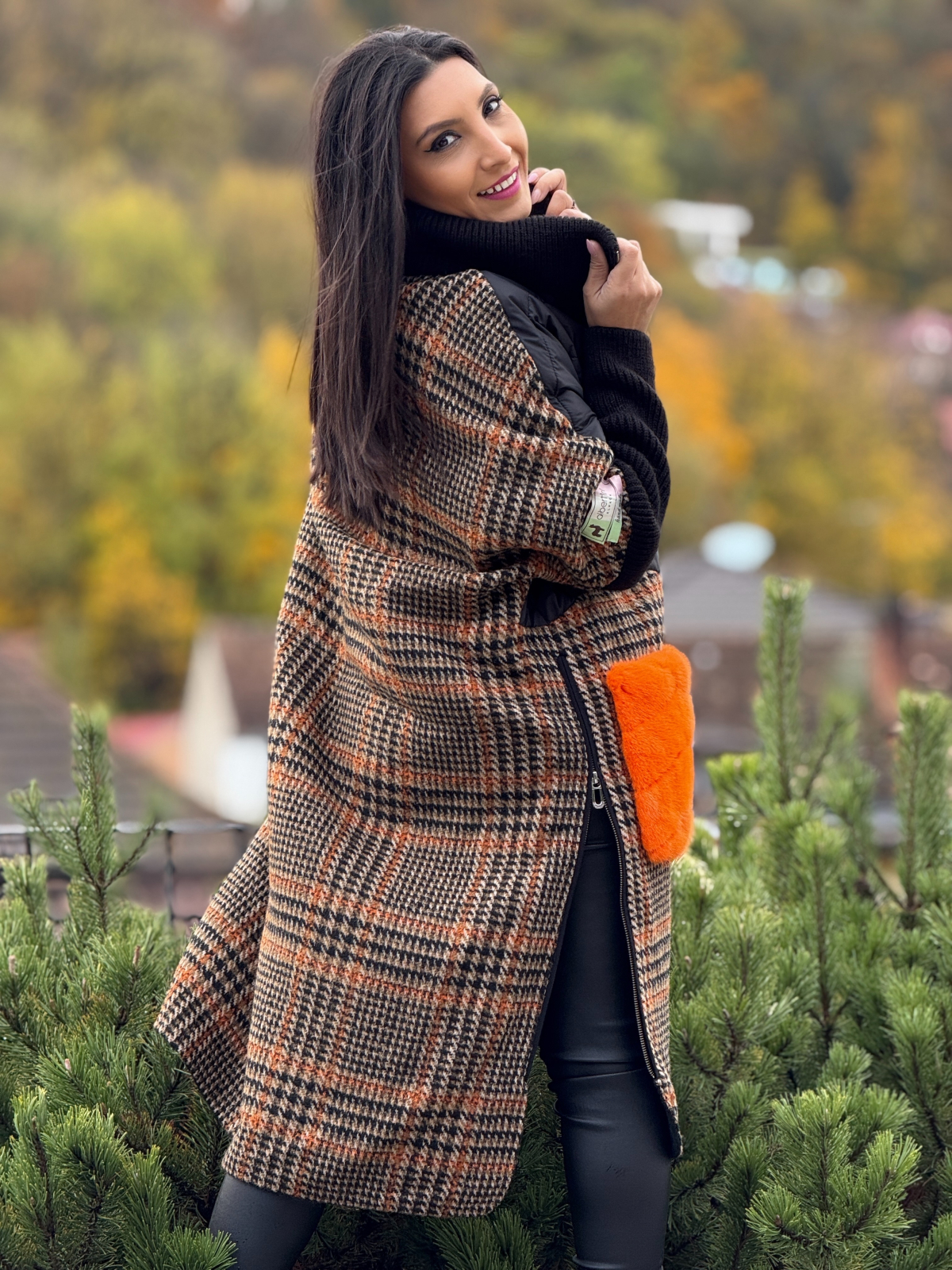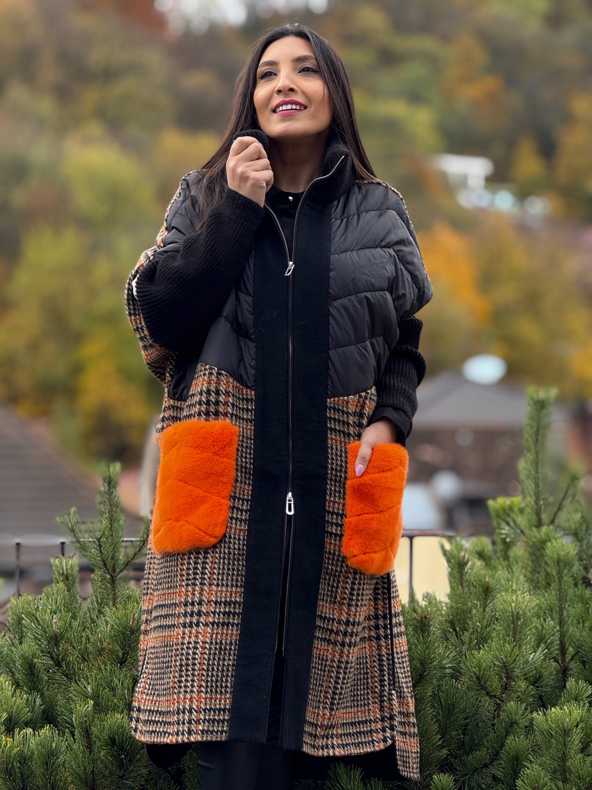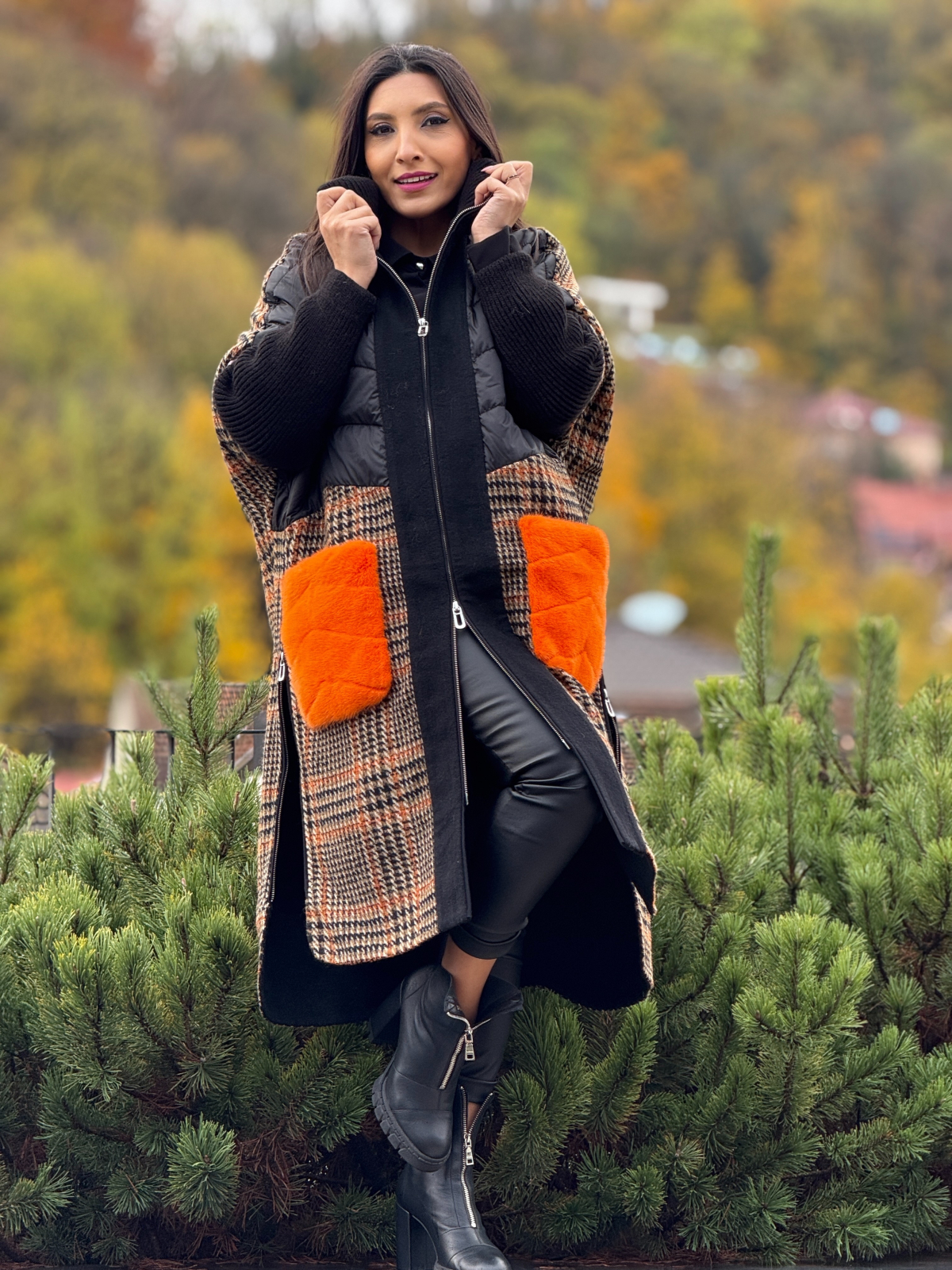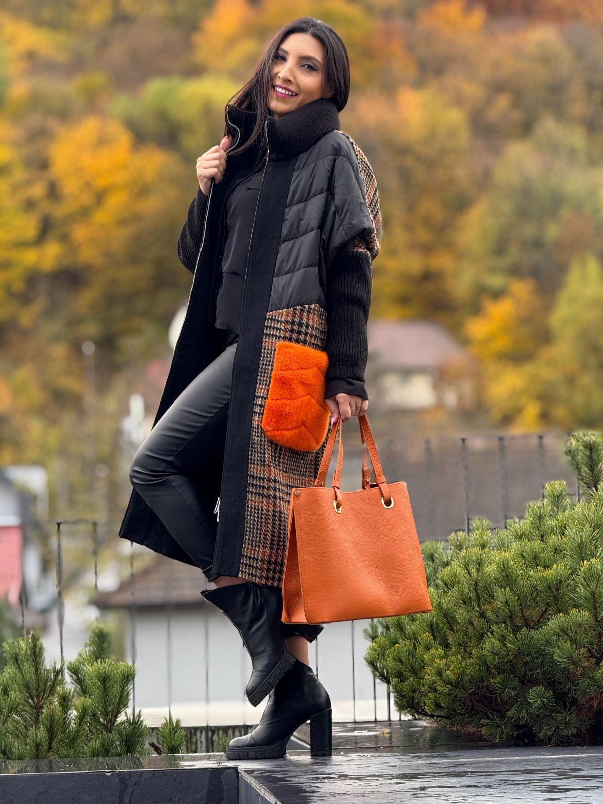 Haina din alpaca cu buzunare supradimensionate din blana naturala