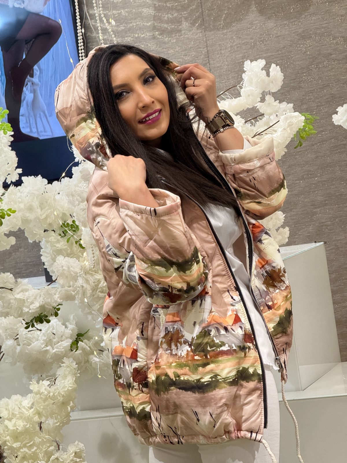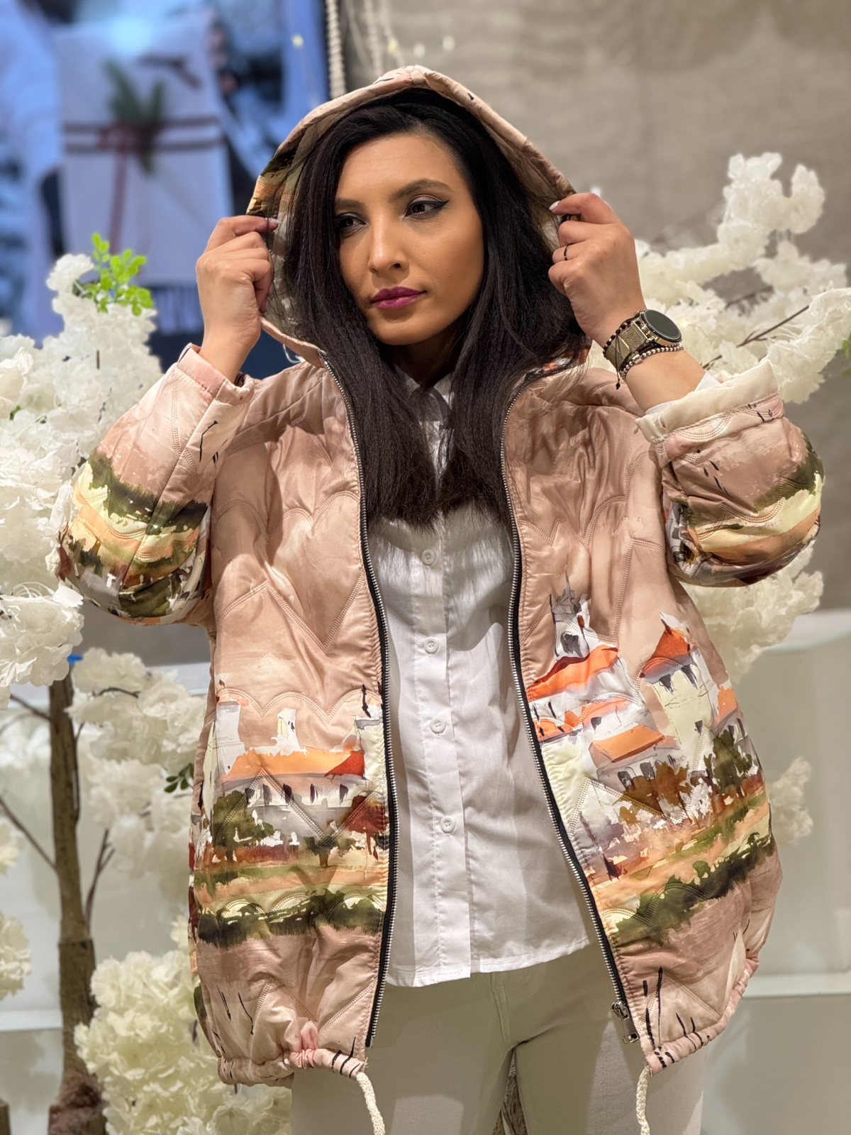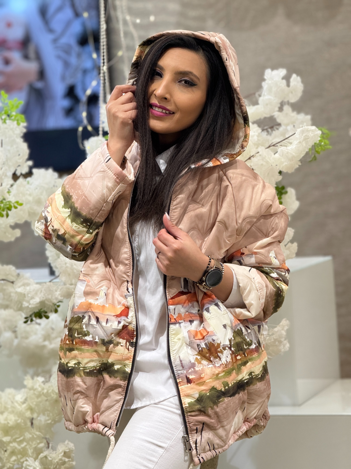 • Geaca cu glugă și imprimeu castel este o piesă statement, ideală pentru zilele răcoroase în care vrei să ieși din tipare.