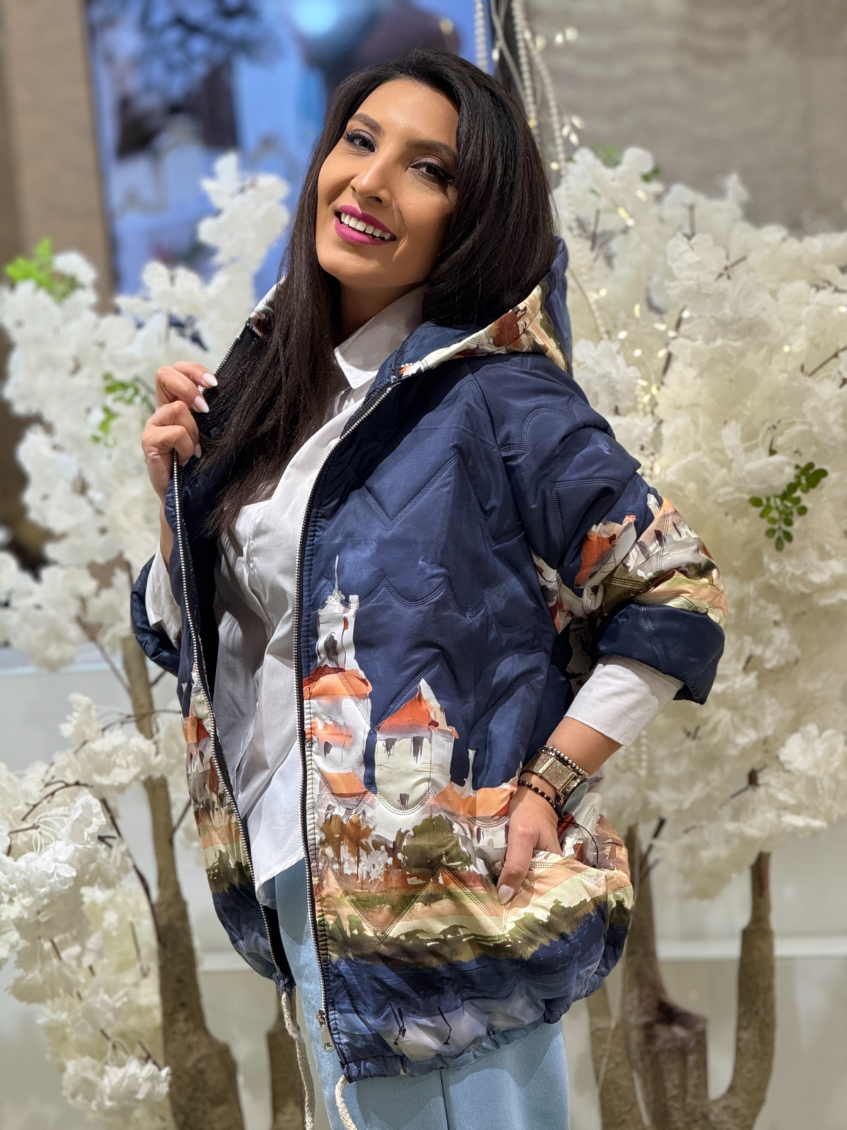 • Geaca cu glugă și imprimeu castel este o piesă statement, ideală pentru zilele răcoroase în care vrei să ieși din tipare.