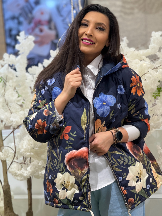 • Geaca cu glugă și imprimeu floral este combinația perfectă între funcționalitate și feminitate.