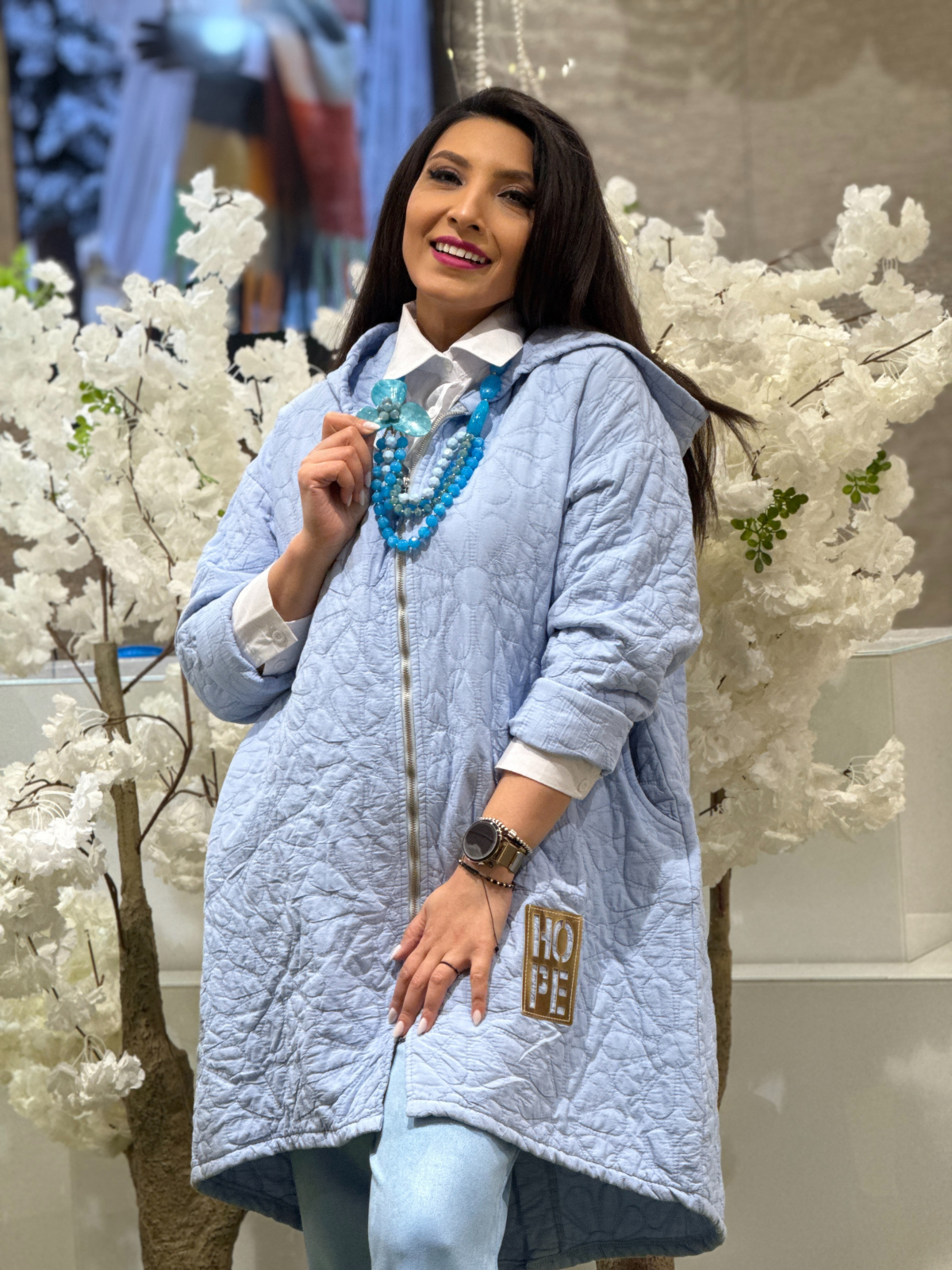 Geaca lungă „Hope” cu imprimeu floral este o piesă versatilă, care îmbină confortul cu un design delicat și expresiv. Imprimeul floral aduce un aer proaspăt și feminin, ideal pentru a înviora ținutele de zi cu zi.