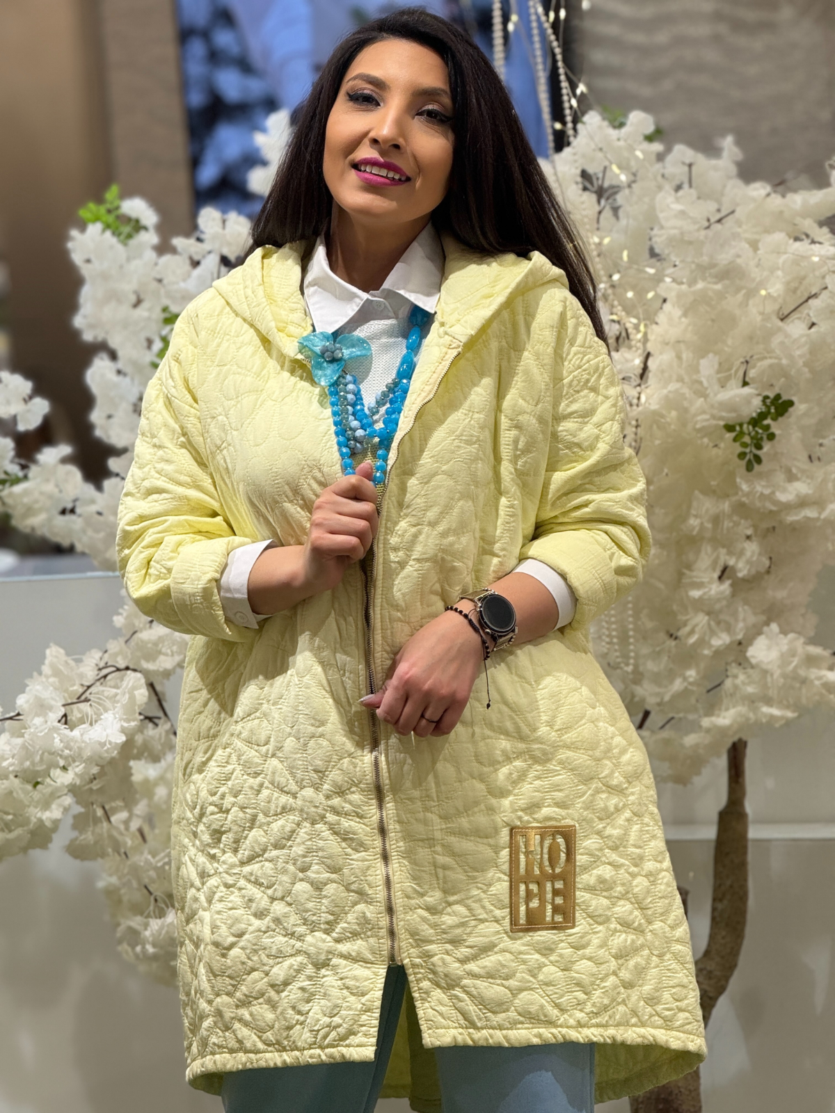 • Geaca lungă „Hope” cu imprimeu floral este o piesă versatilă, care îmbină confortul cu un design delicat și expresiv. Imprimeul floral aduce un aer proaspăt și feminin, ideal pentru a înviora ținutele de zi cu zi.