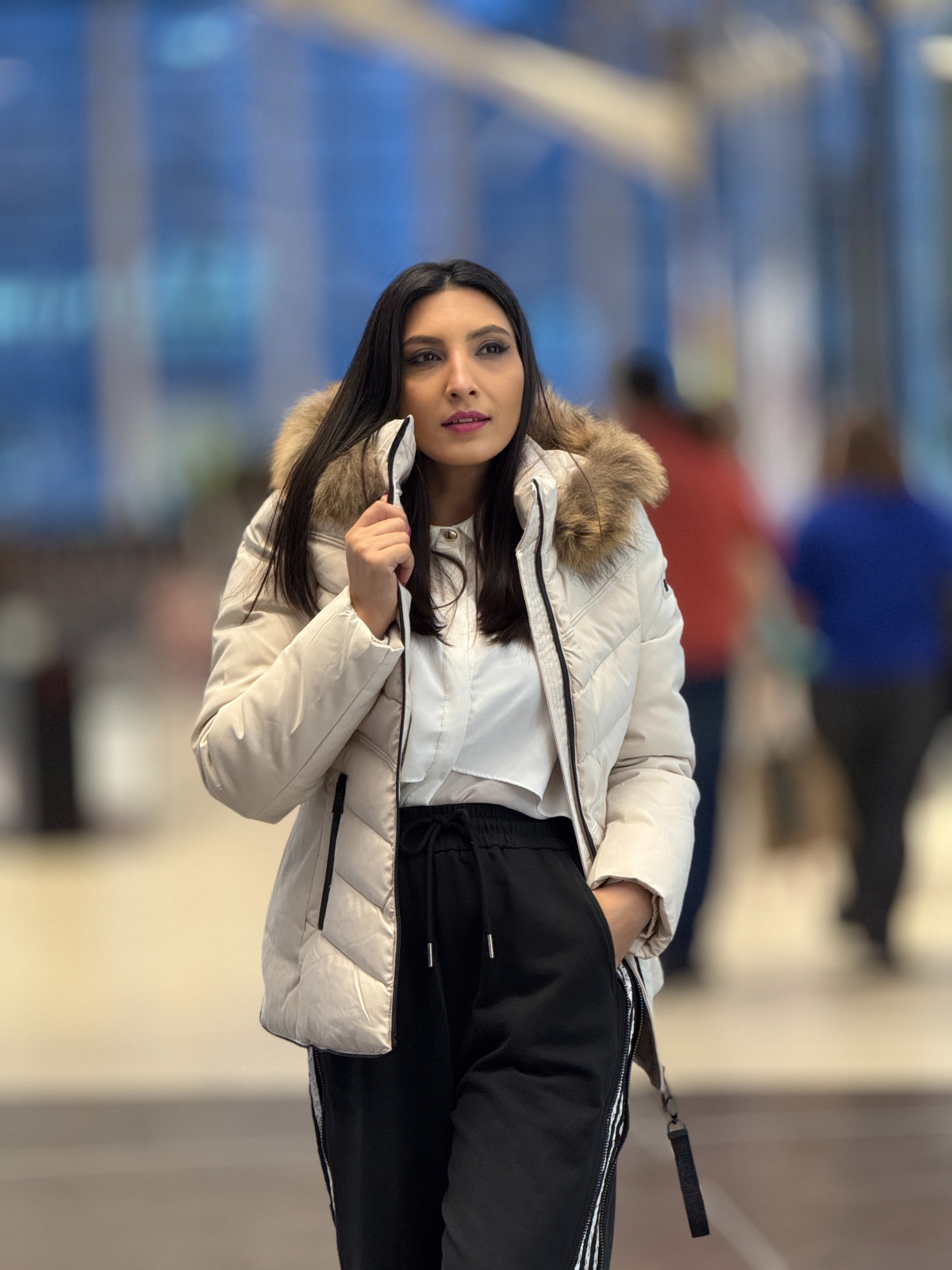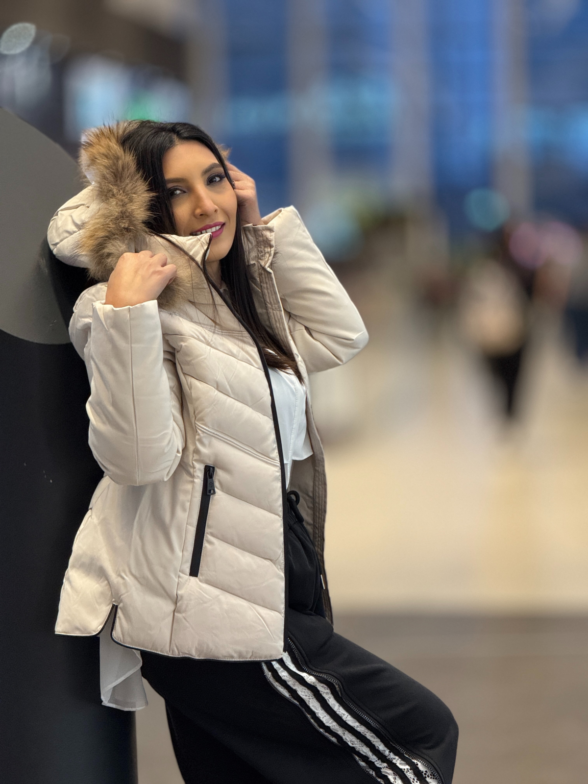 • Croiala scurtă și nuanța delicată de ivoire oferă un aer rafinat, iar blana naturală adaugă o notă de lux discret, perfect echilibrată între stil și confort.
