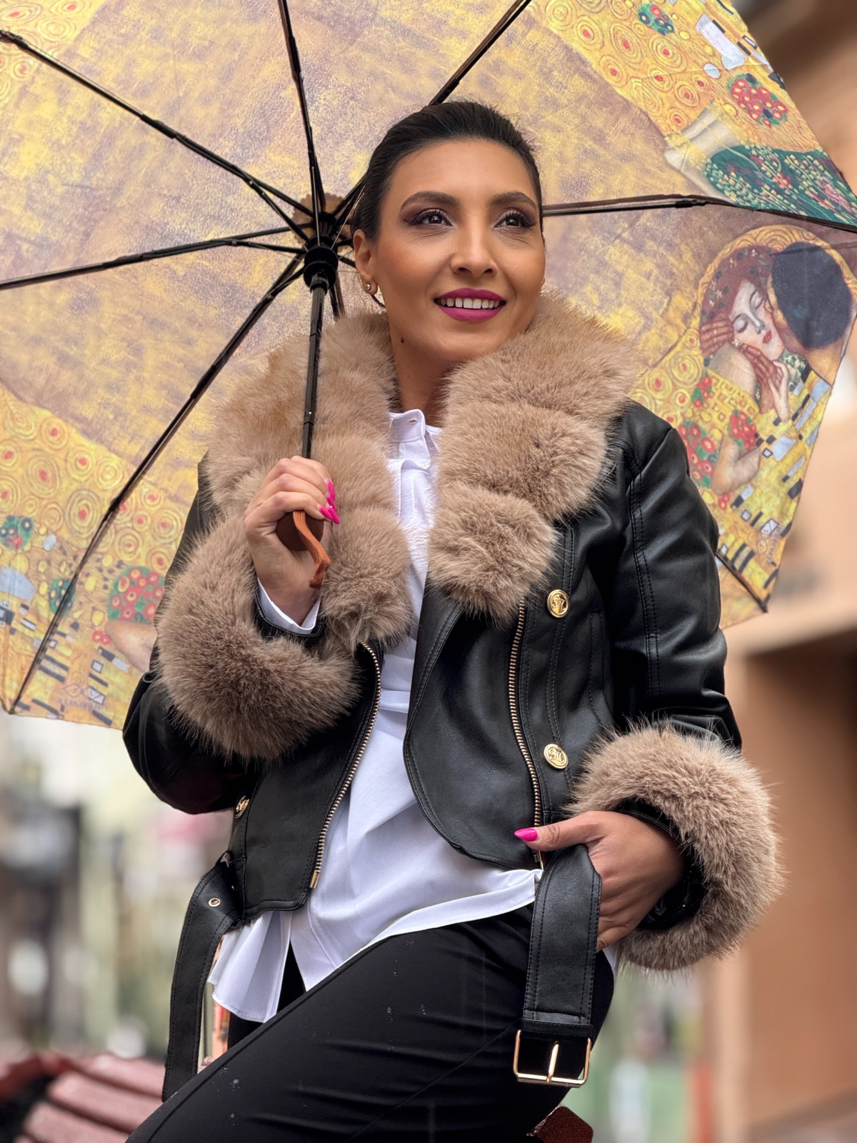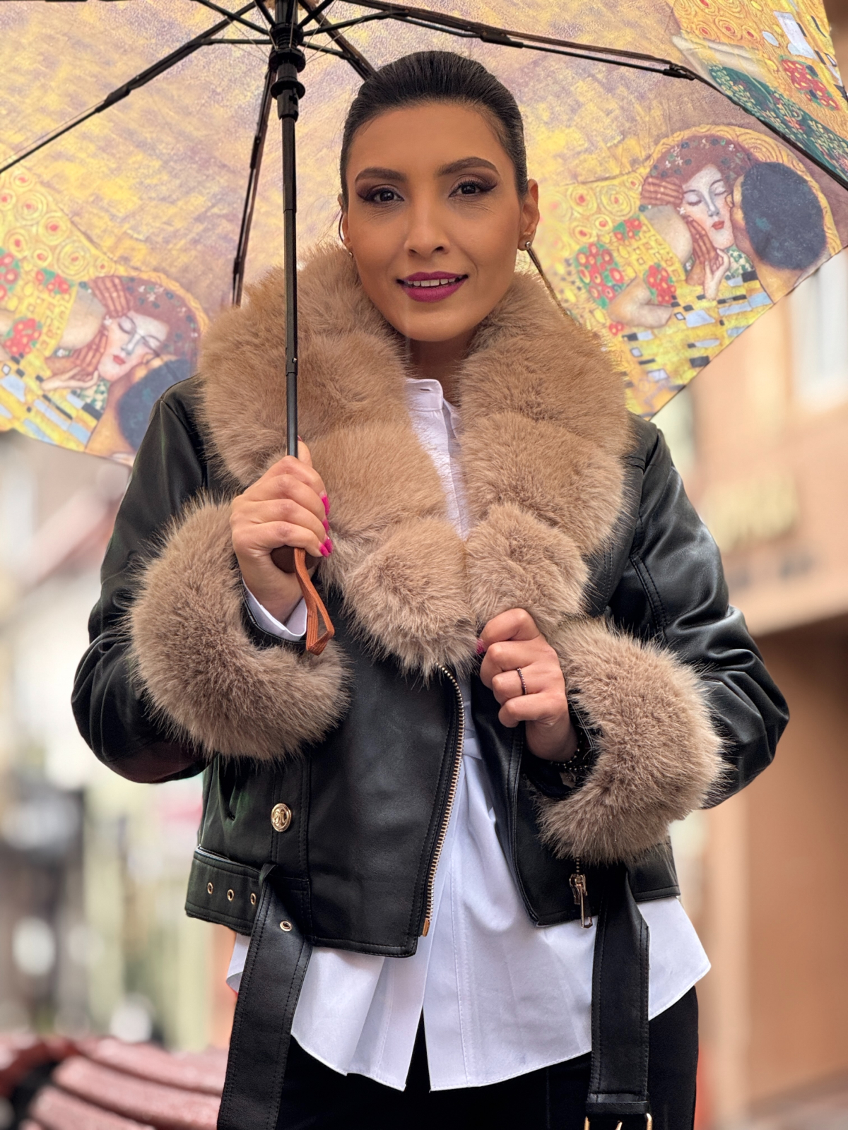 • Geaca scurtă din piele ecologică cu blană artificială este o alegere inspirată pentru femeia care dorește să îmbine eleganța cu confortul în sezonul rece.