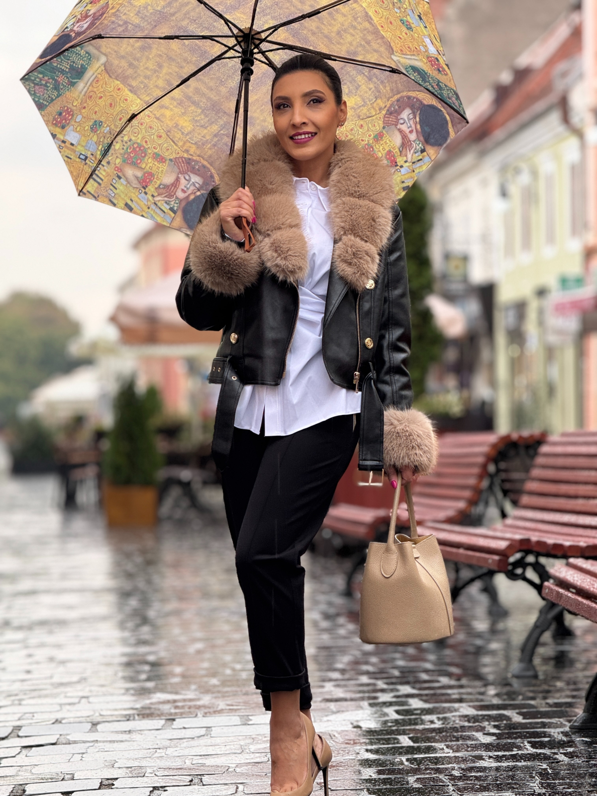 • Modernă, practică și elegantă, geaca scurtă din piele ecologică cu blană artificială este piesa perfectă pentru zilele reci, completând orice ținută cu un aer sofisticat și contemporan.