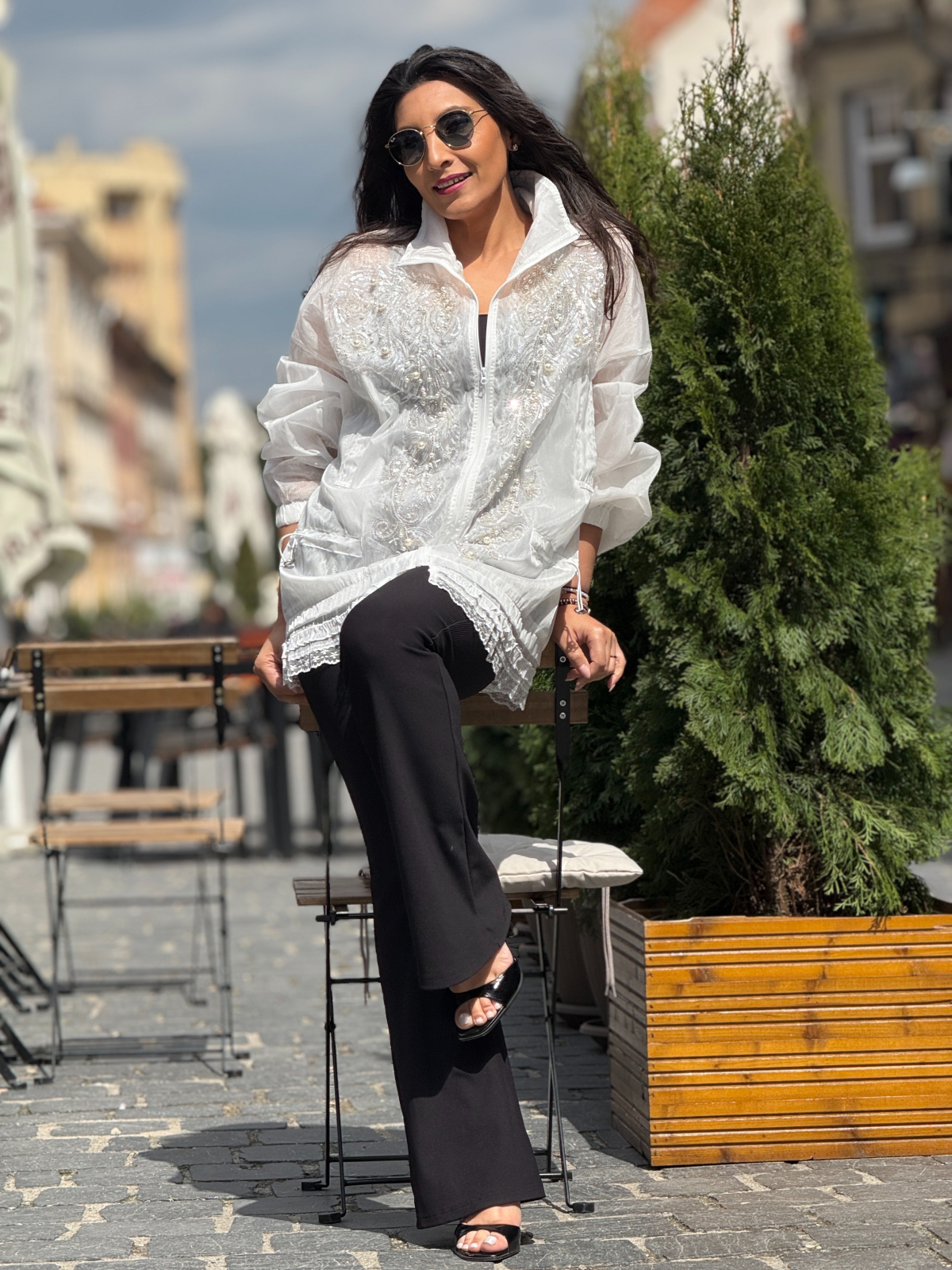 Detaliile fine de paiete și perle adaugă o notă de eleganță, iar croiala rafinată asigură confort și stil.