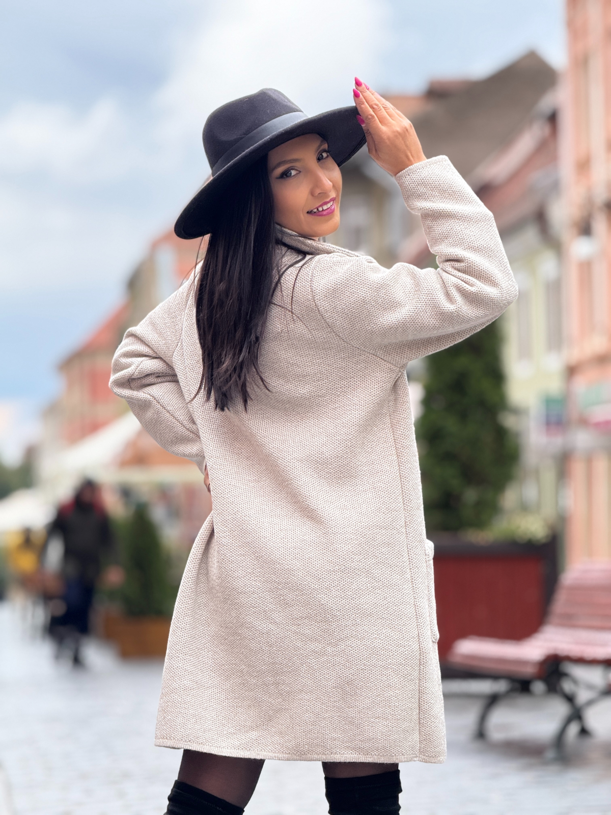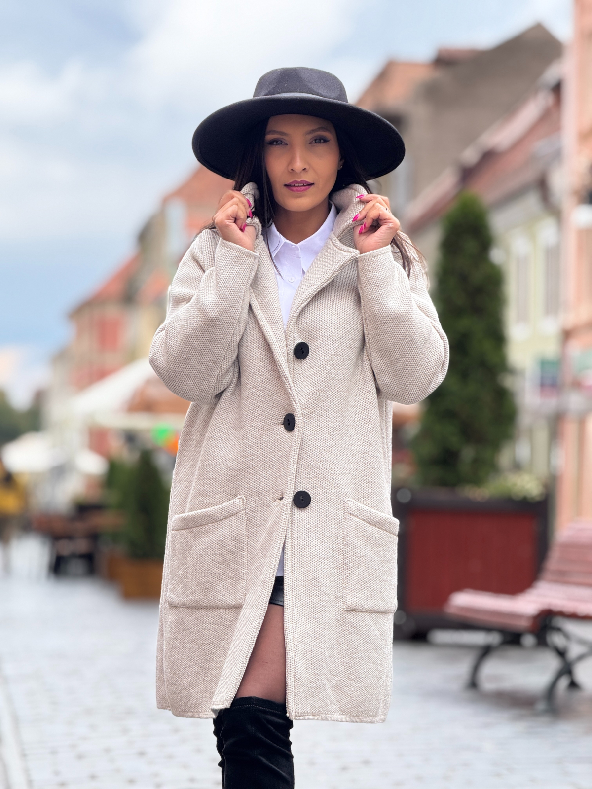 Jacheta tricotata cu nasturi si buzunare
