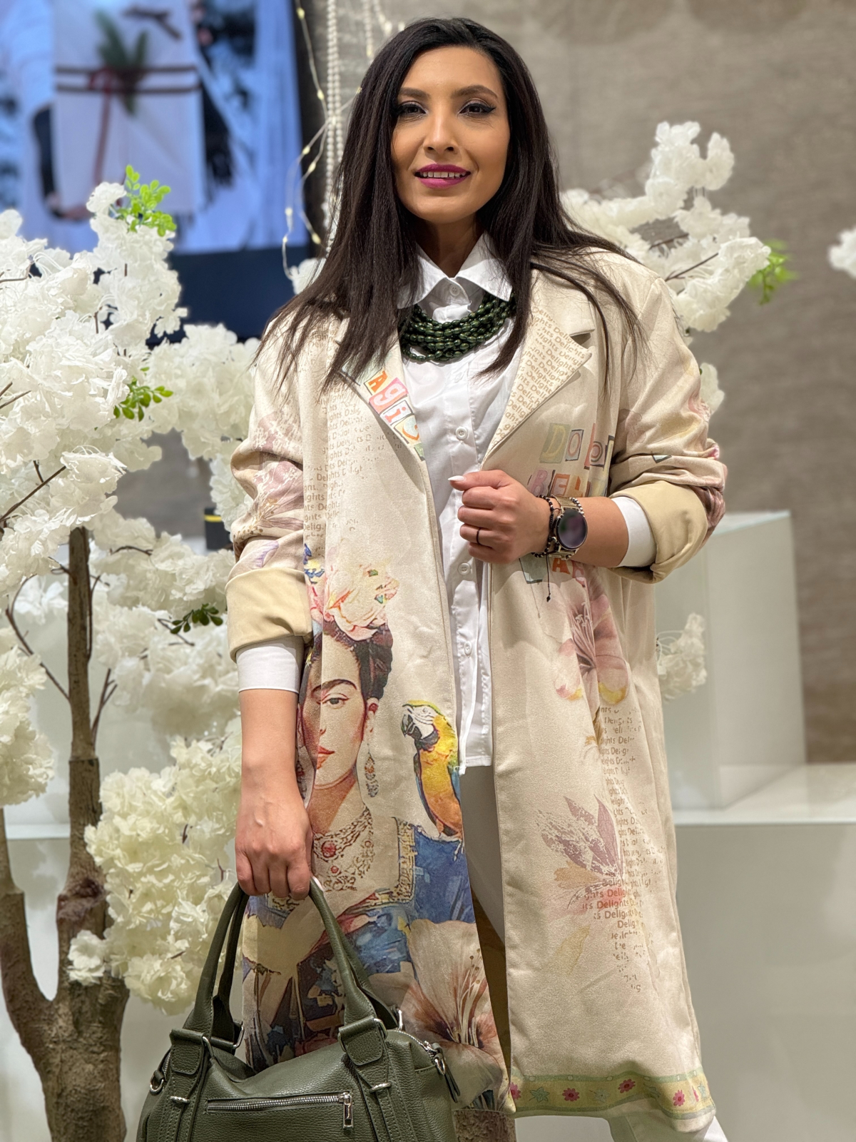 • Sacoul cu design artistic este alegerea ideală pentru femeile care caută o piesă vestimentară cu personalitate și impact vizual.