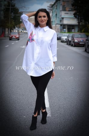 Cămașa cu imprimeu colibri roz este o piesă care adaugă prospețime și feminitate garderobei tale, oferind un echilibru între stil și confort.