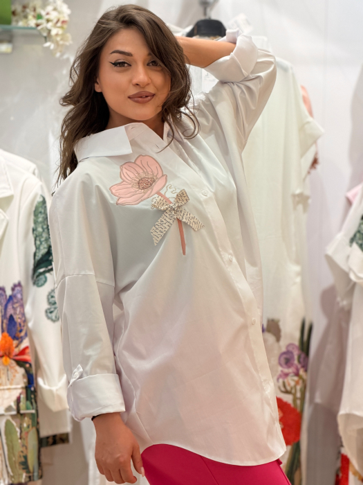 Camasa dama alba cu imprimeu floare cu fundita