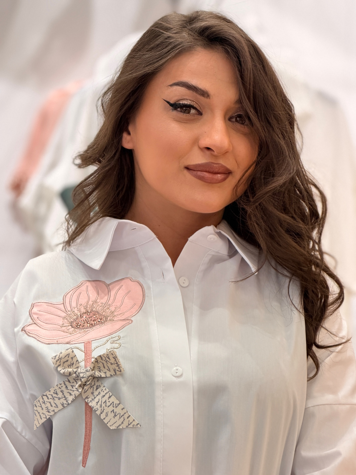 - Cămașă albă cu imprimeu deosebit.
