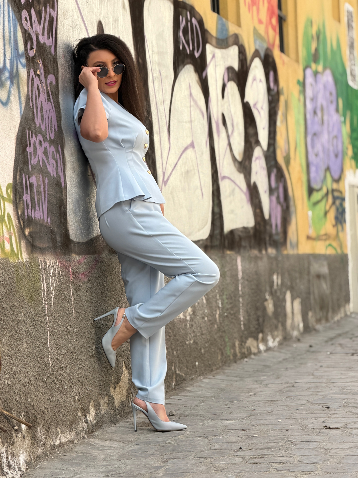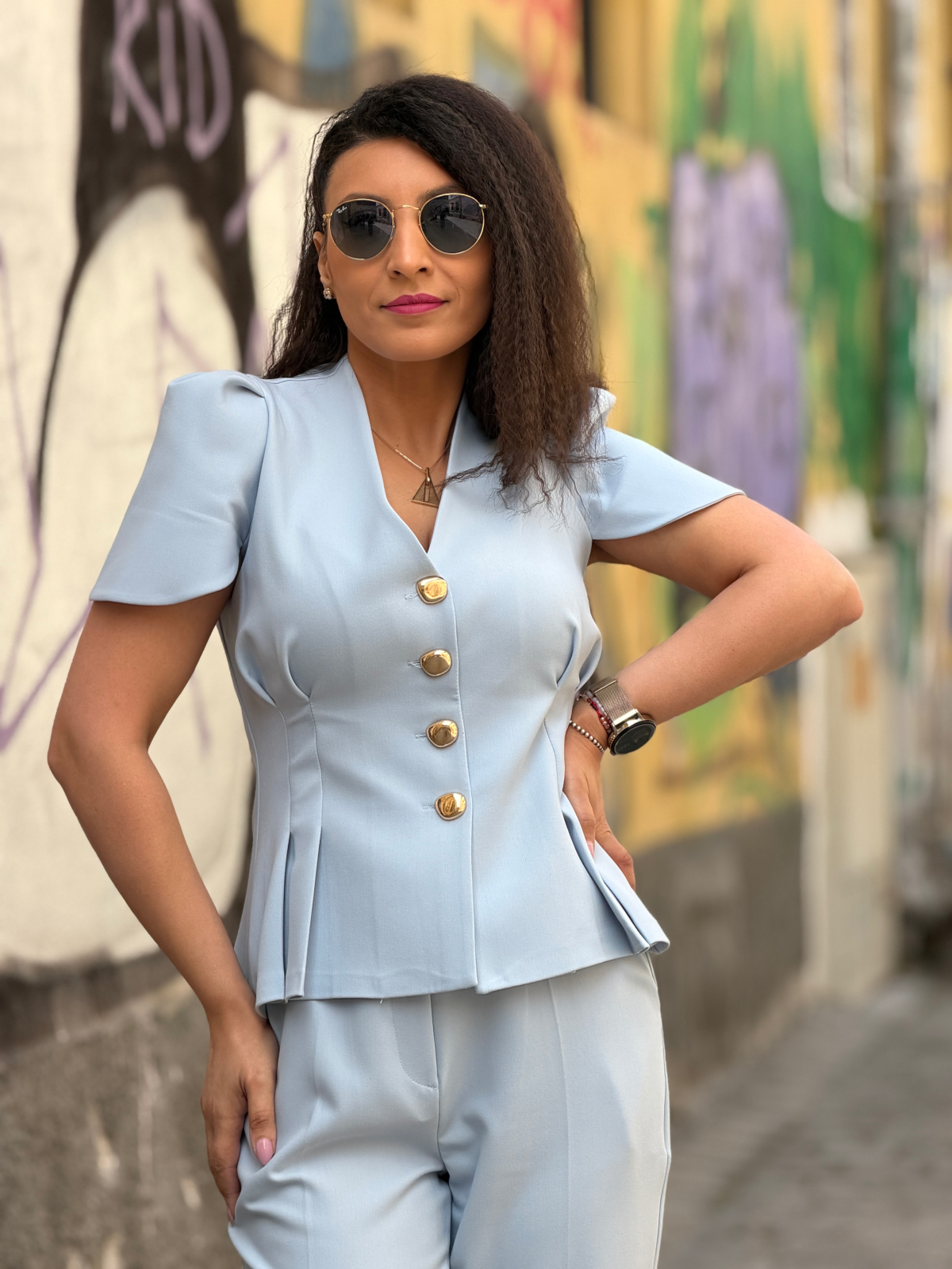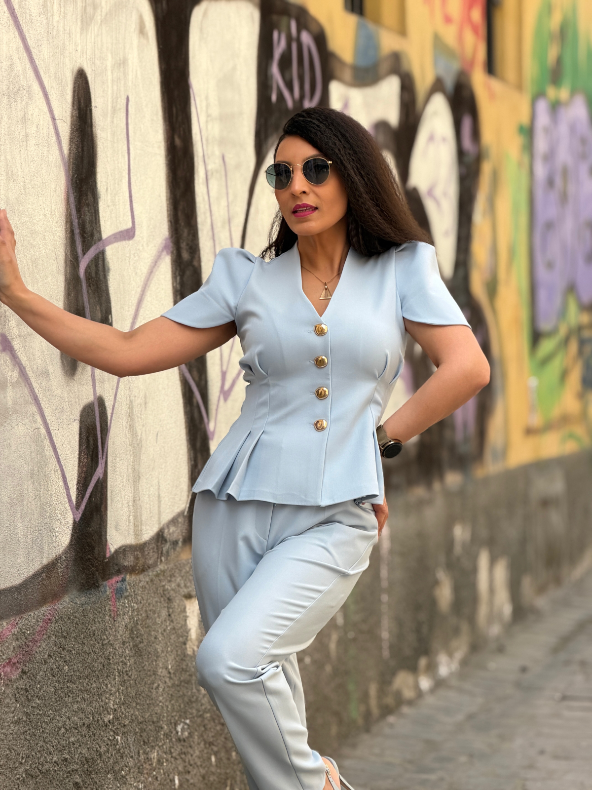Costumul cu umeri bufanți îți oferă un aer sofisticat. Vei simți cum confortul și eleganța te înconjoară.