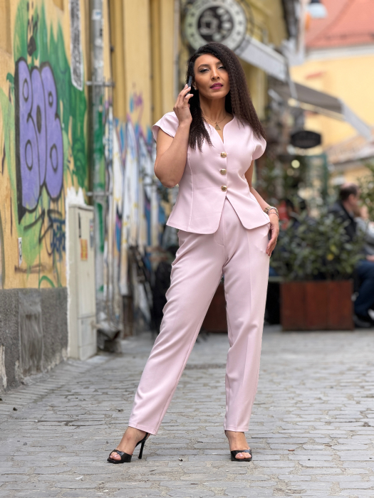 Costum cu nasturi si umeri goi