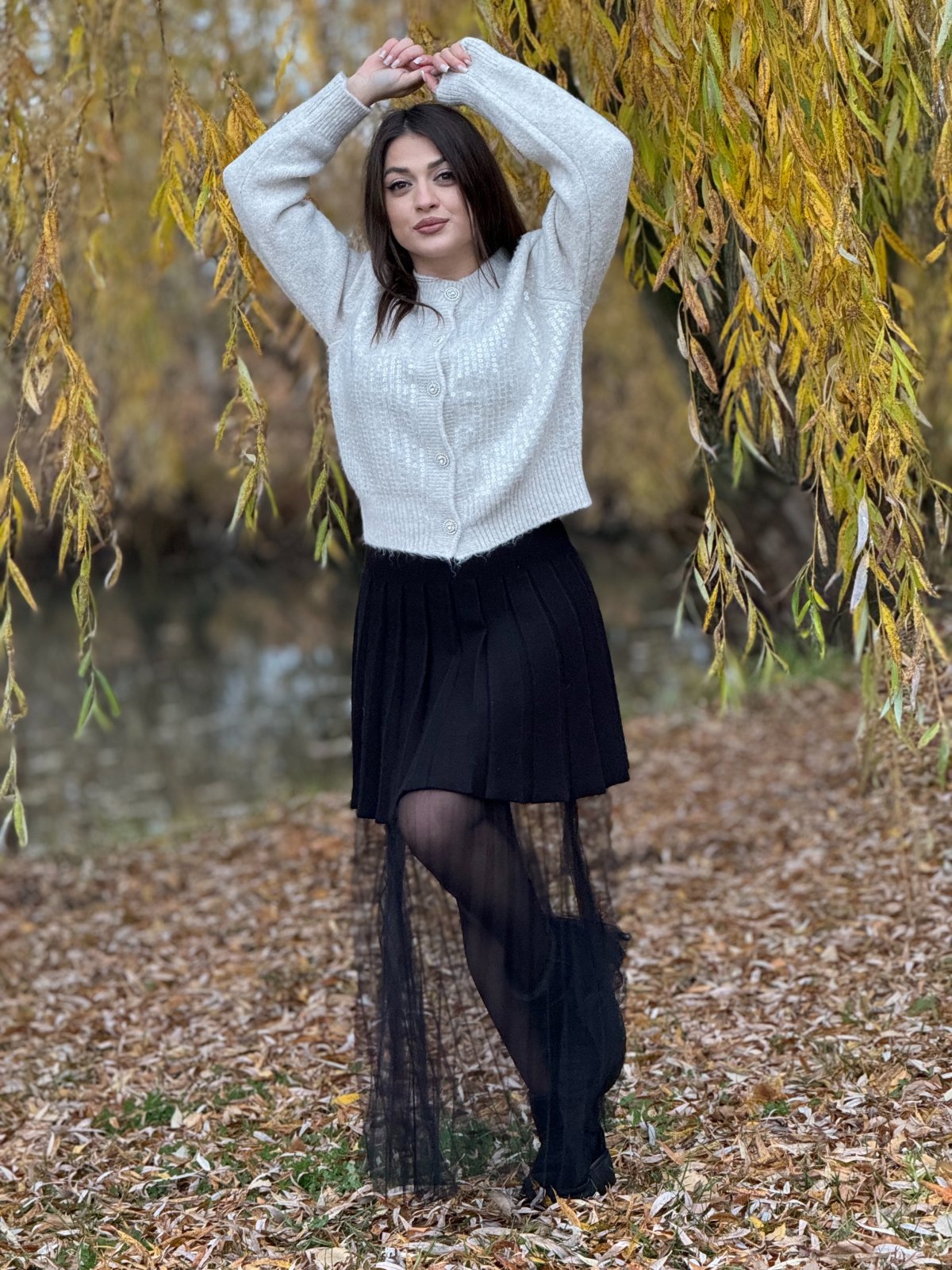 Fusta plisata cu tulle in partea de jos