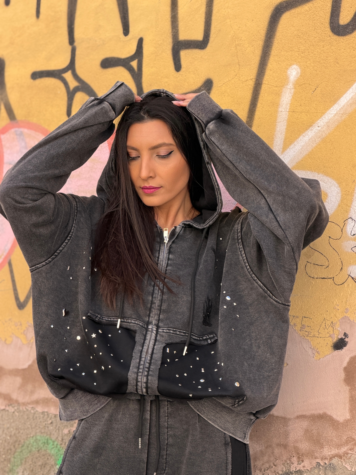 Explorează confortul și stilul cu jacheta noastră cu glugă și aplicații. Este perfectă pentru a te simți liberă și confortabilă în fiecare zi.