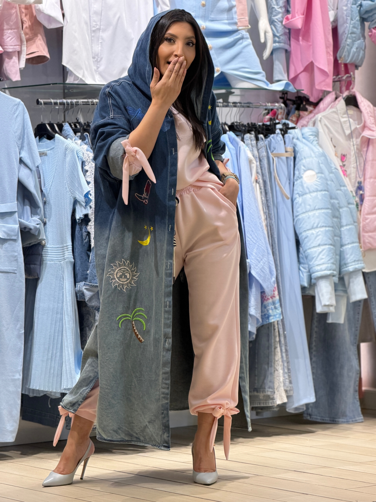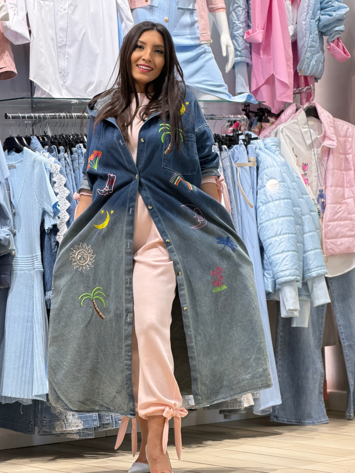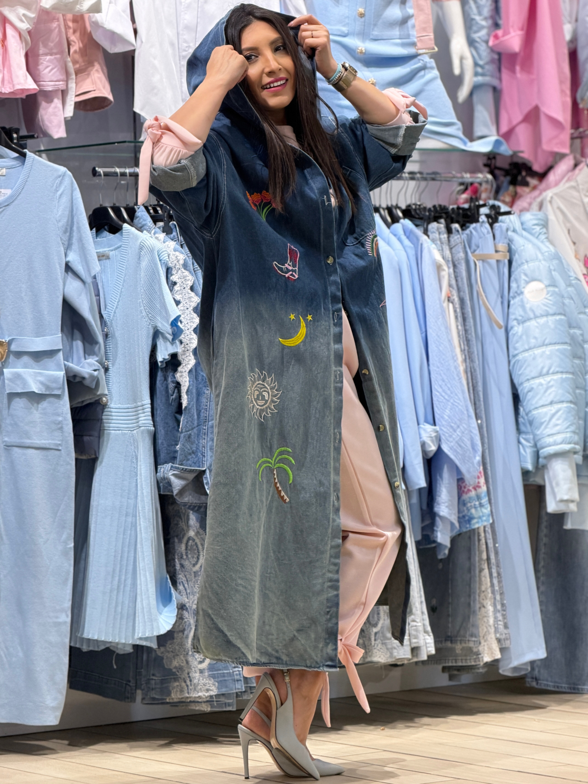 Jacheta lungă cu nasturi și glugă, cu detalii brodate, îți oferă o stare de confort și siguranță în orice zi. Este perfectă pentru a te simți liberă și încrezătoare.