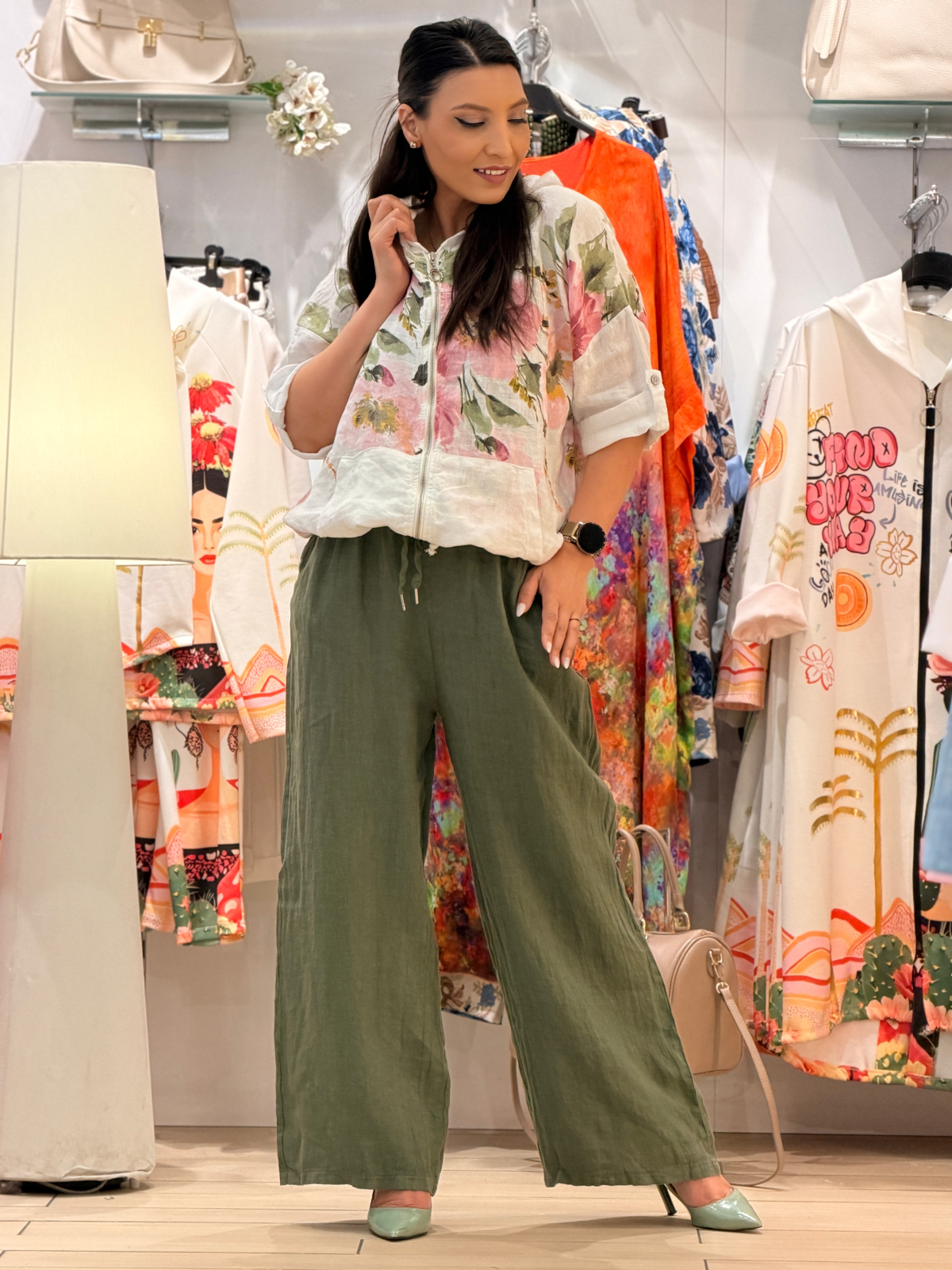 • Pantaloni cu croială lejeră, perfectă pentru vara.