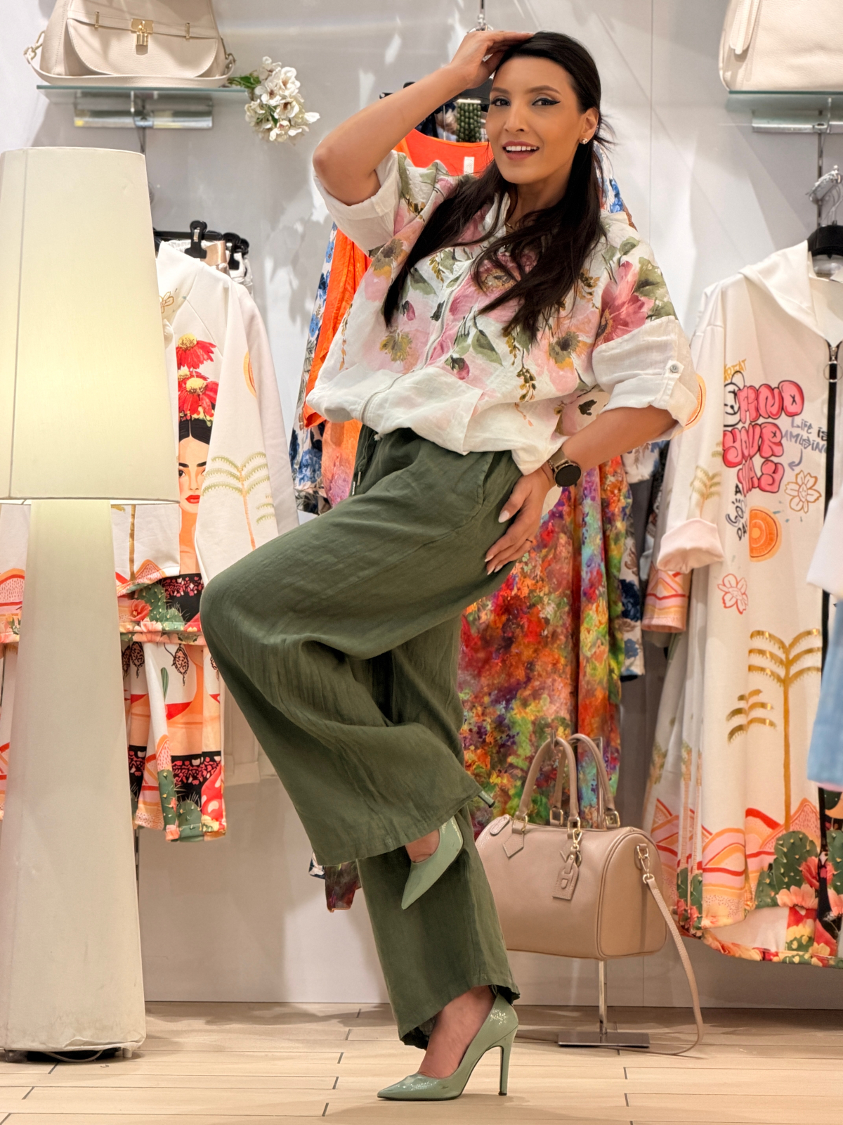 • Material din in, răcoros și confortabil.
