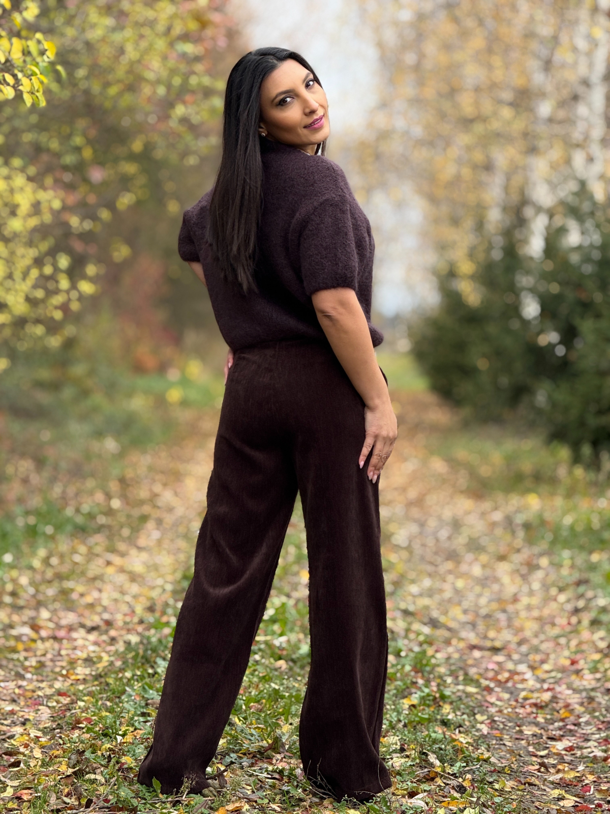 • Nuanța de maro este versatilă și caldă, potrivită pentru combinații cu bluze deschise sau culori neutre