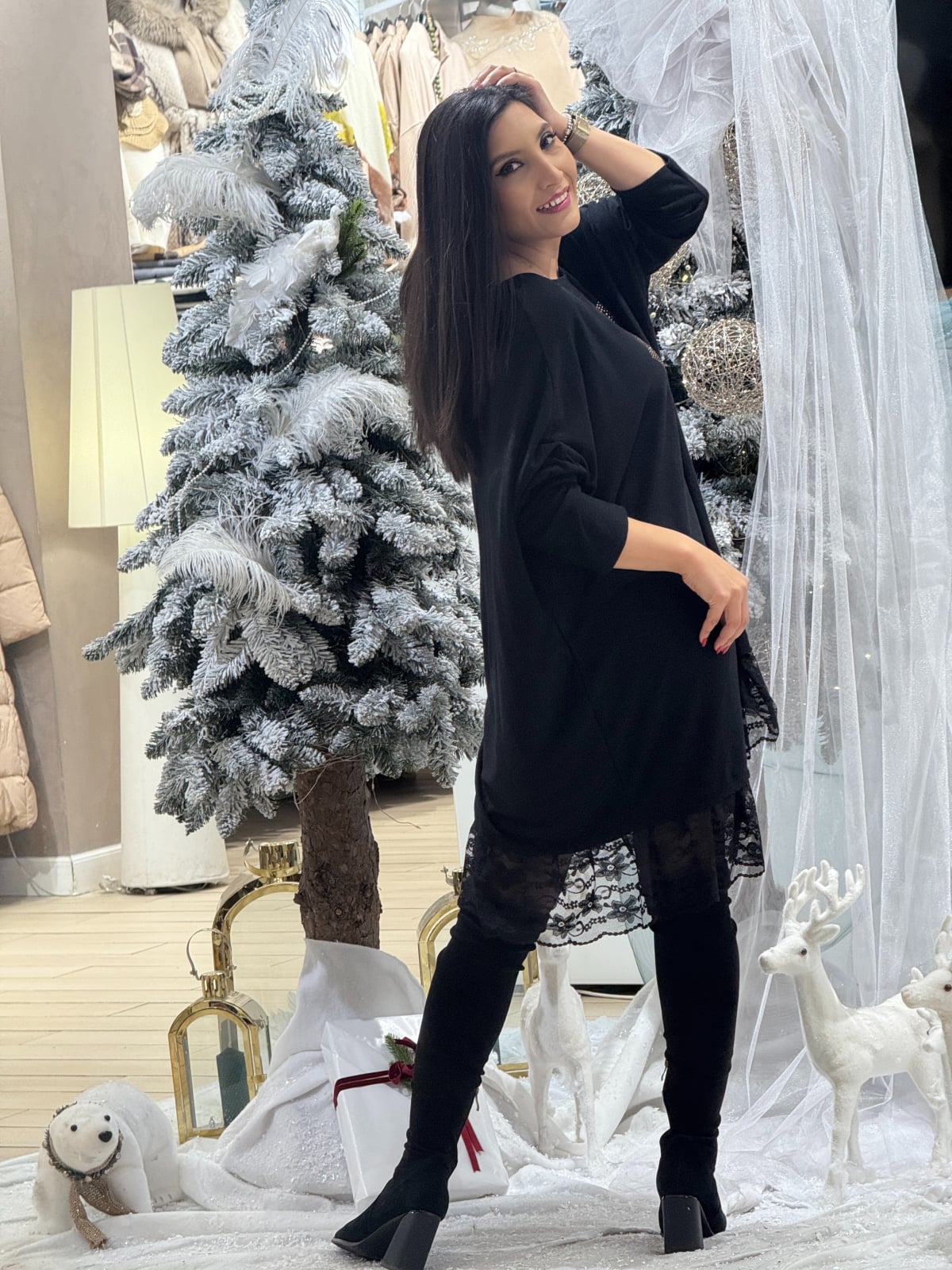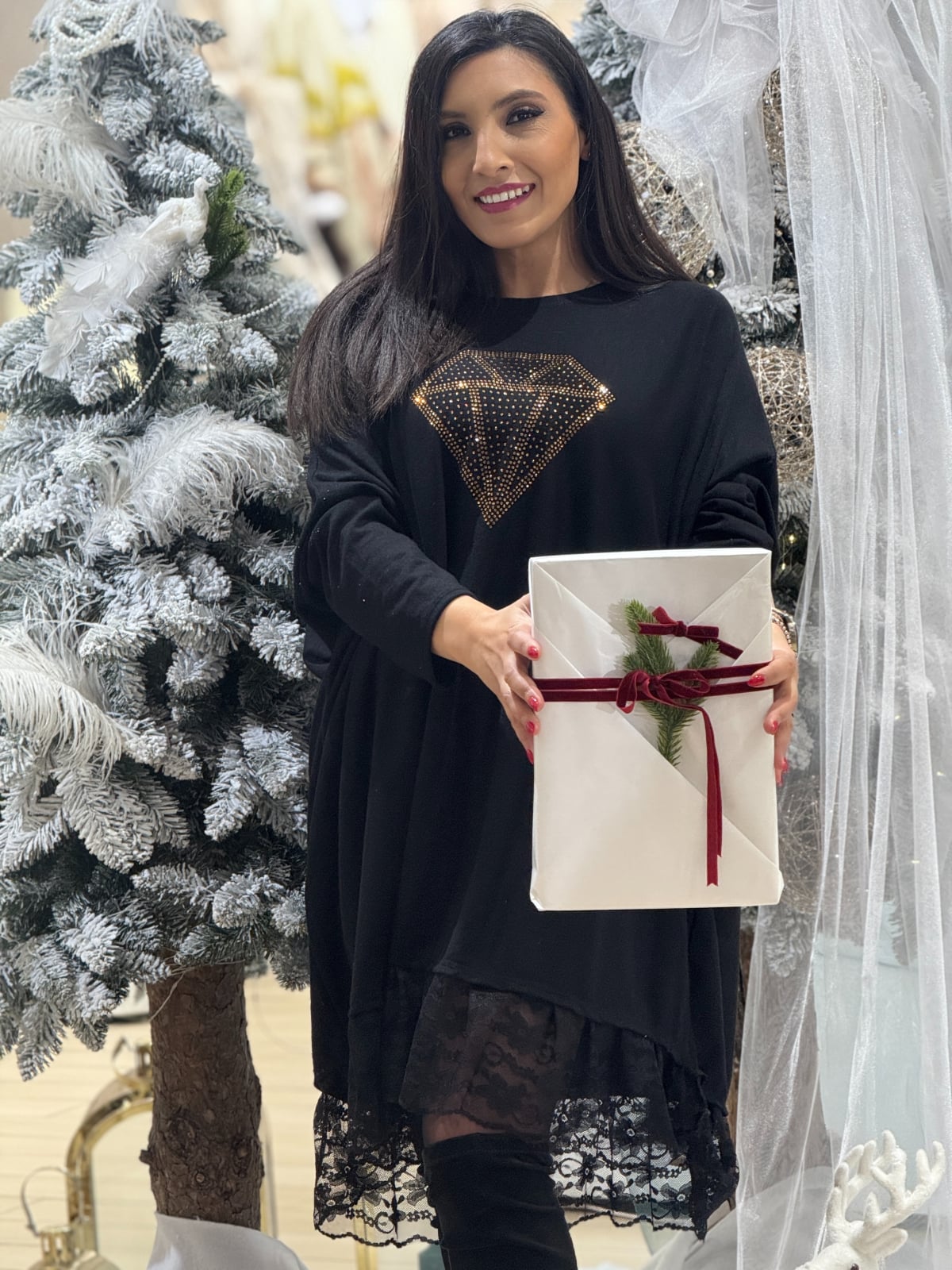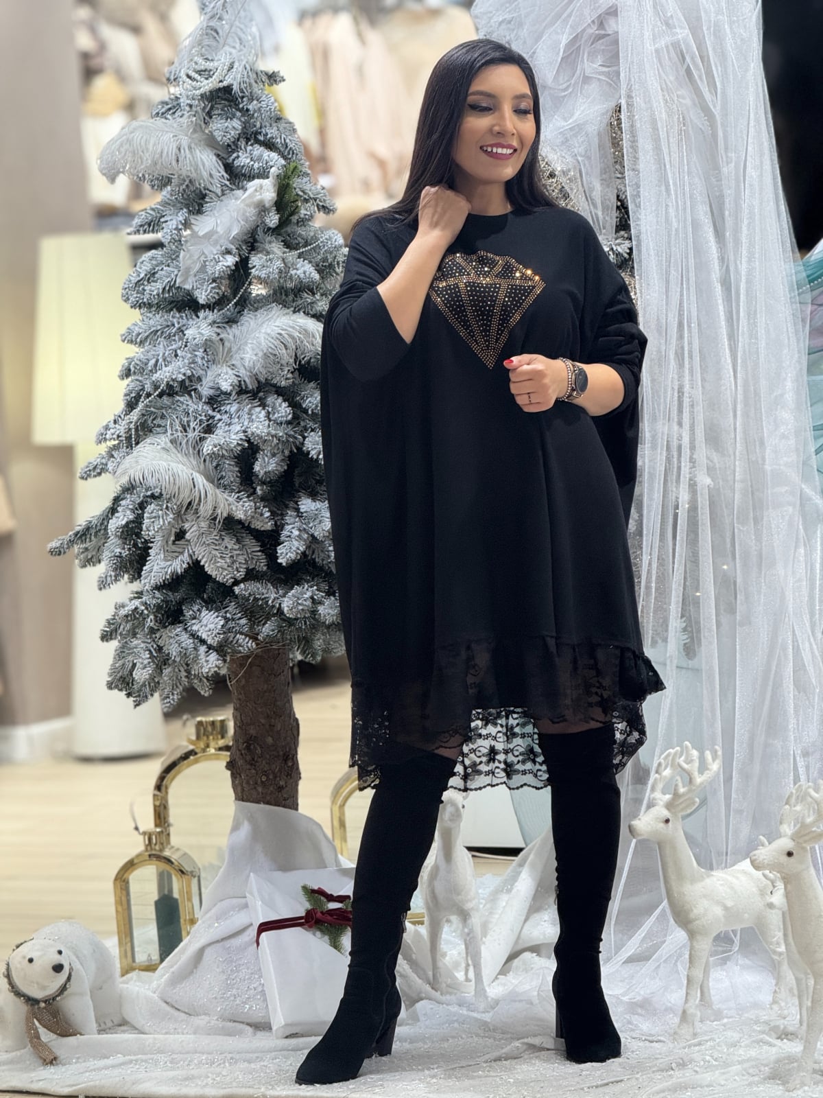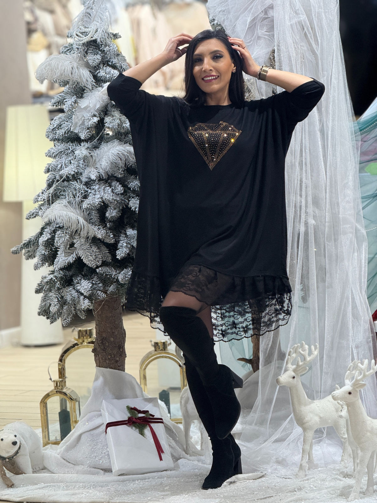 Tunica cu dantela si imprimeu diamant