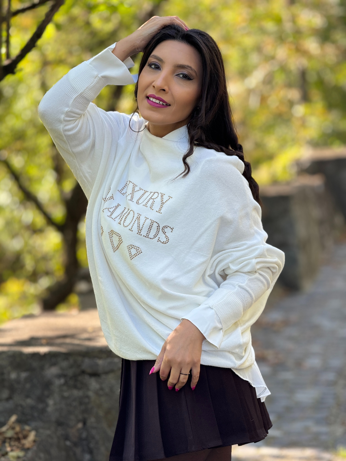 Bluza alba cu imprimeu,,Luxury Diamonds"