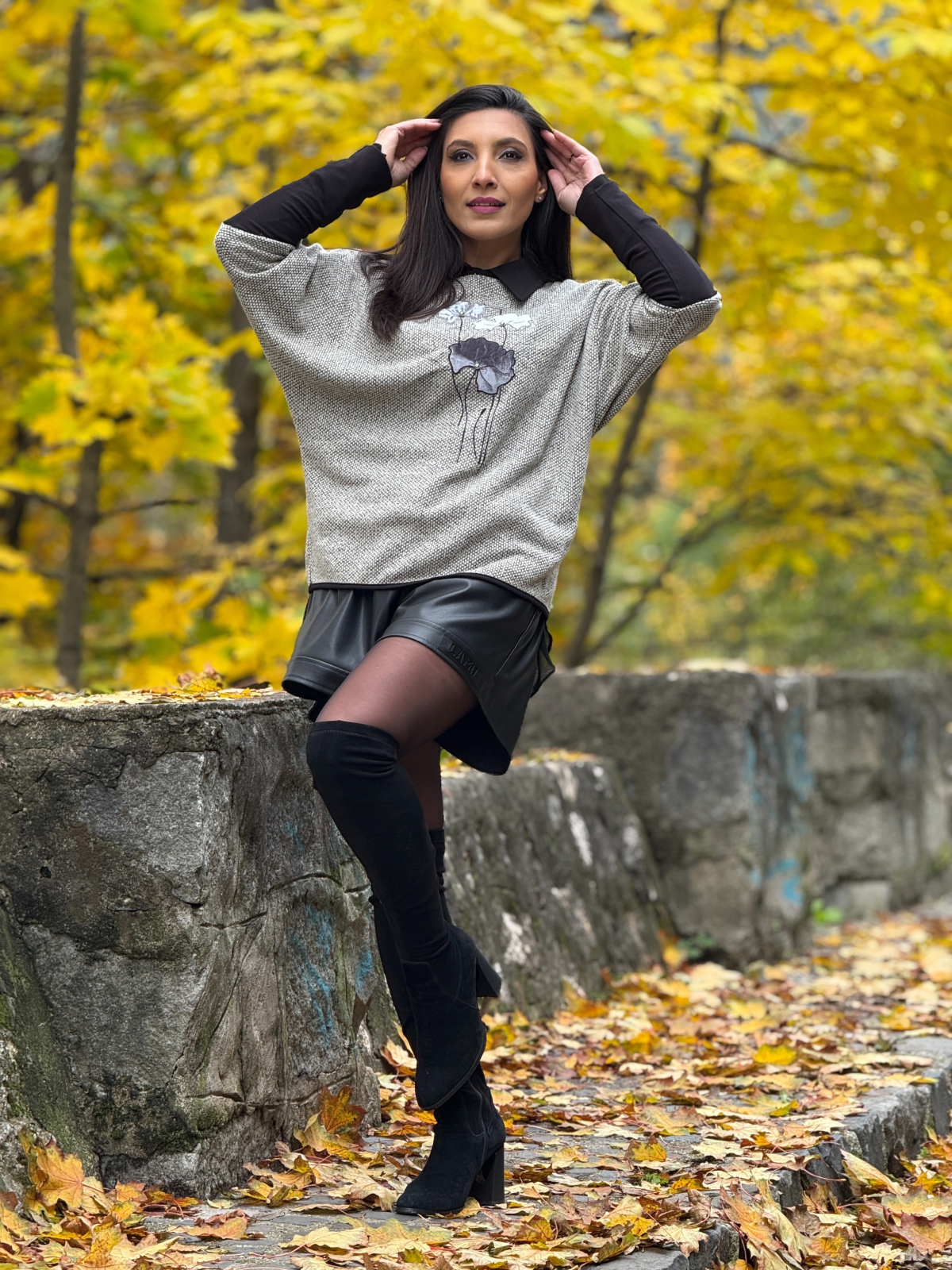 Bluza cu flori gri