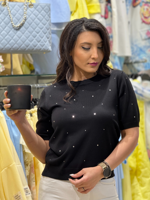 Bluza cu maneca scurta si aplicatii aurii