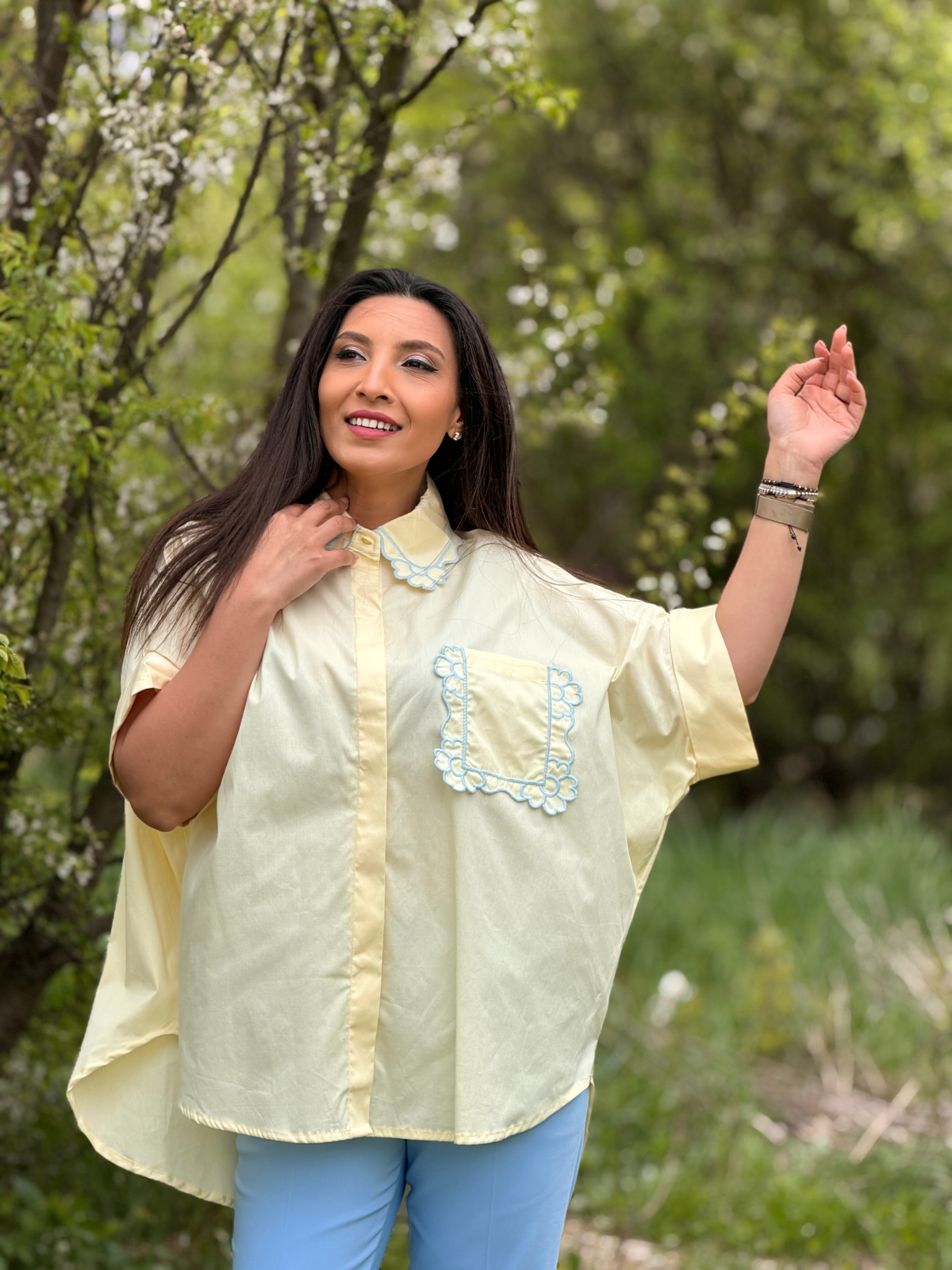 Aplicațiile brodate și croiala modernă o fac un must-have în garderoba ta, fiind ideală pentru orice ocazie.