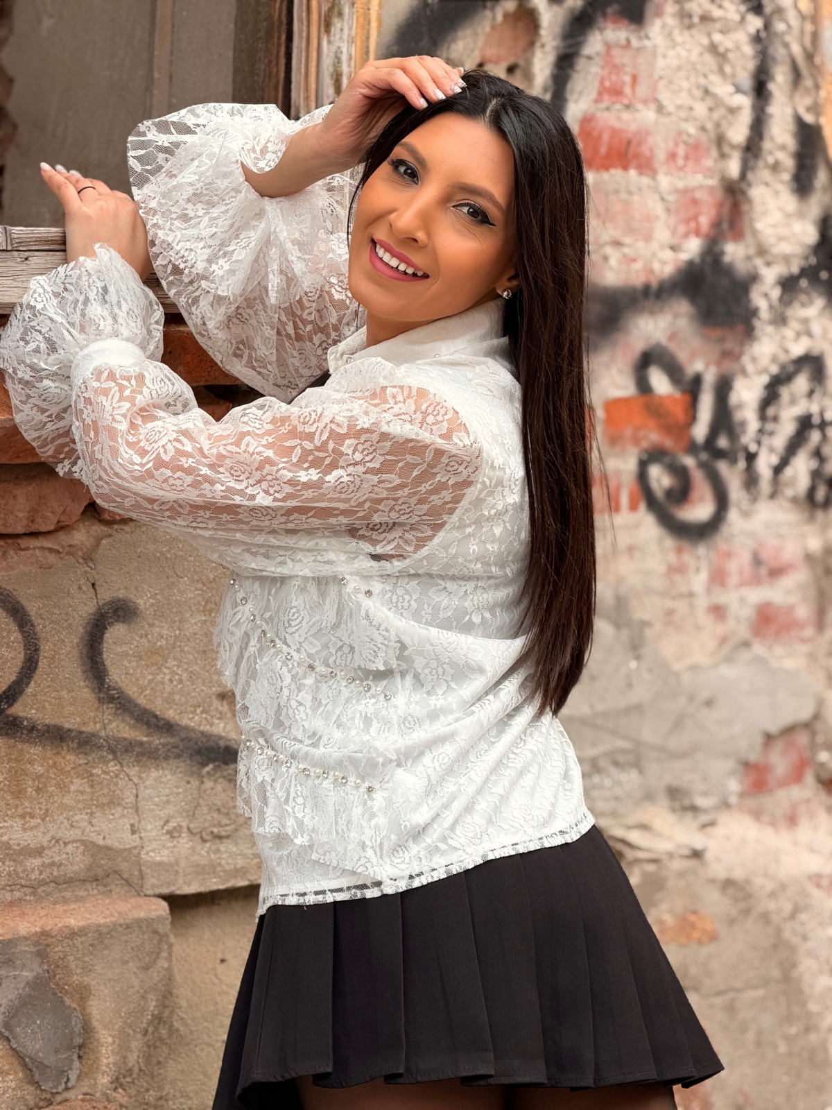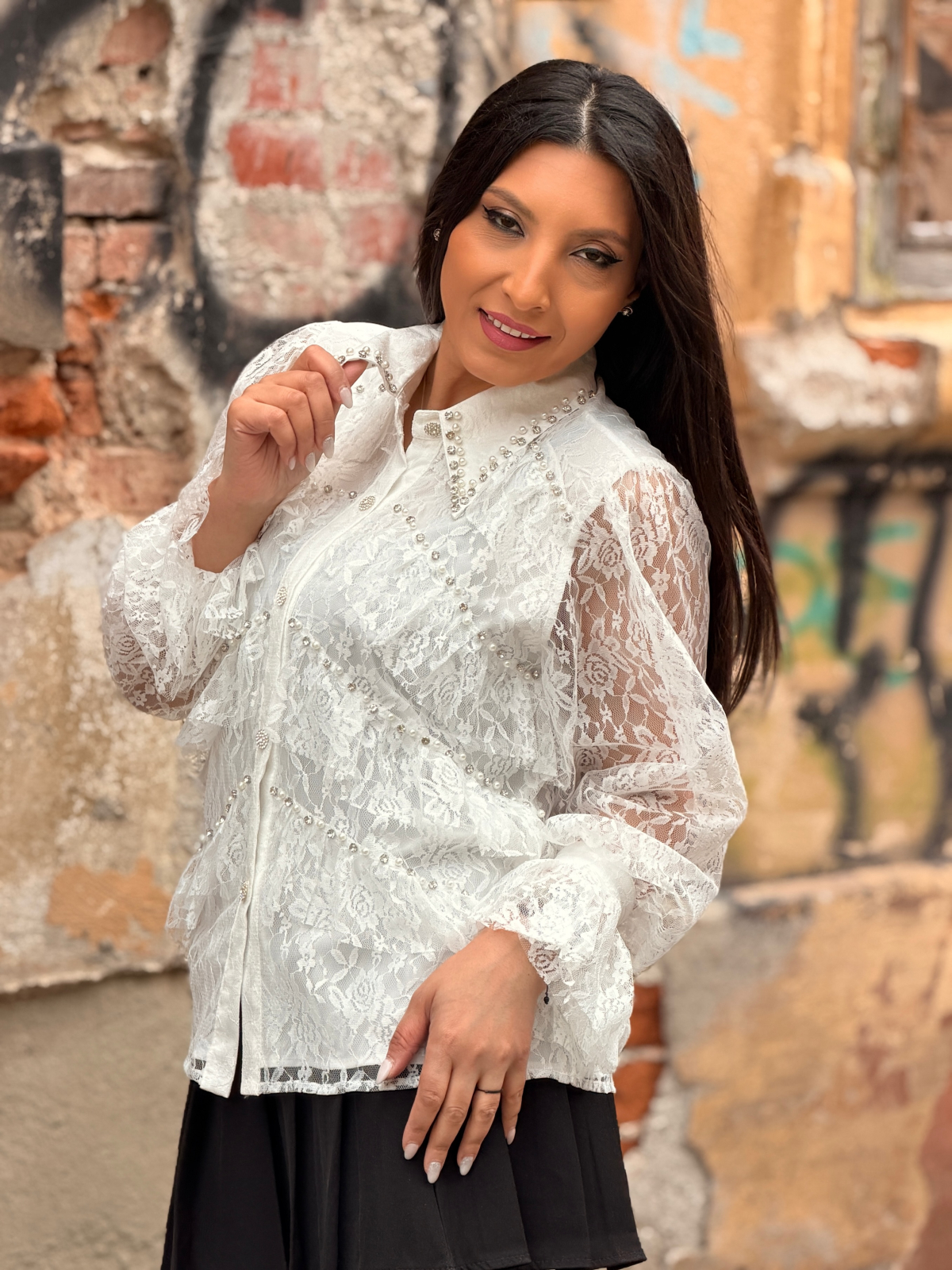 Camasa din dantela si aplicatii decorative cu perle si strasuri