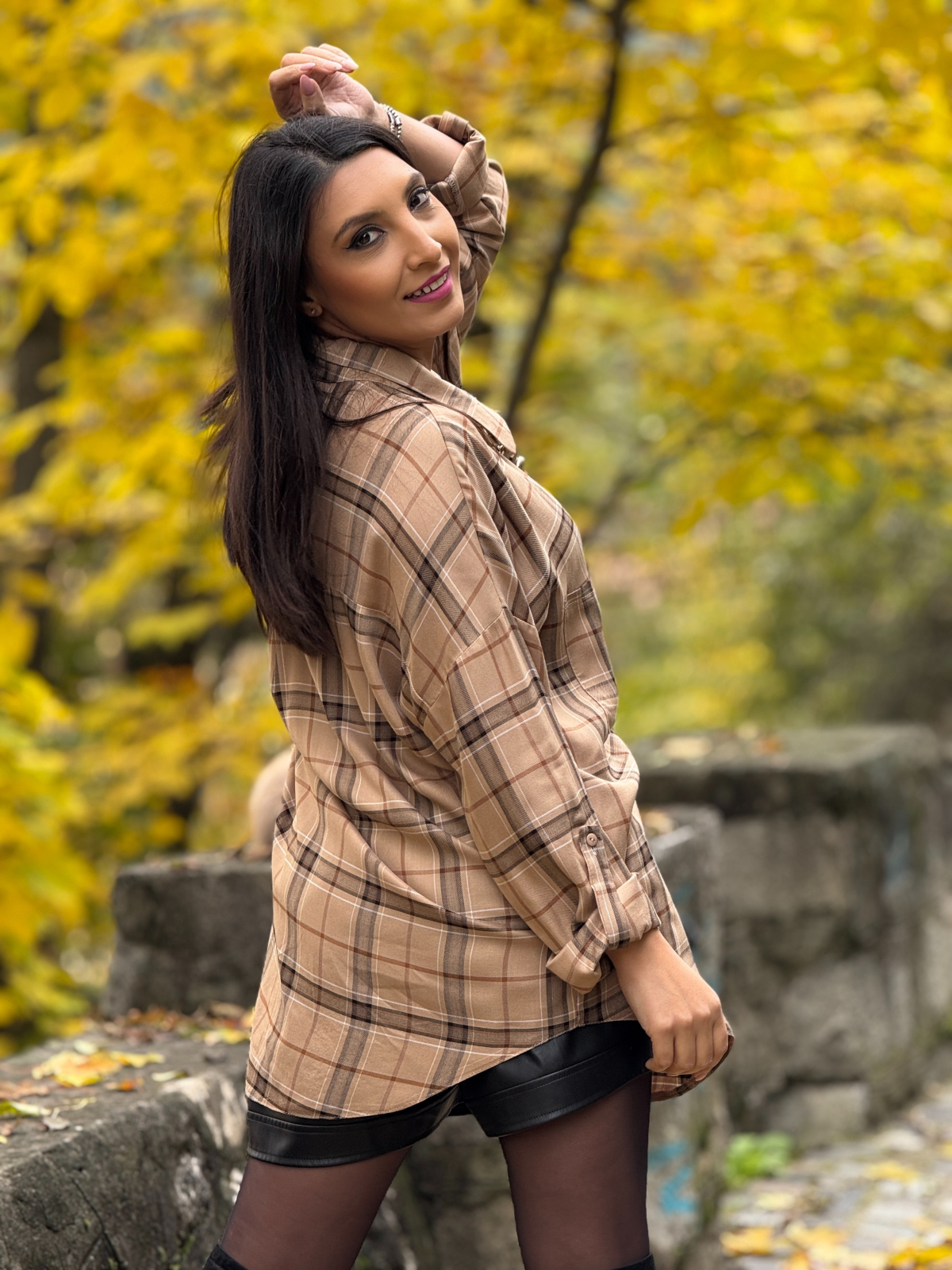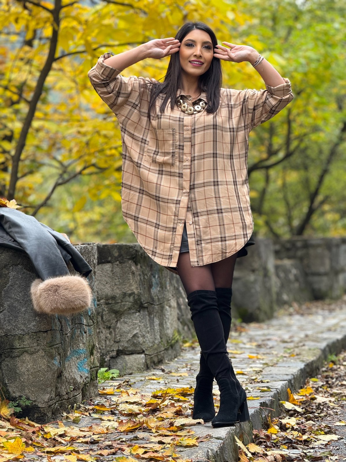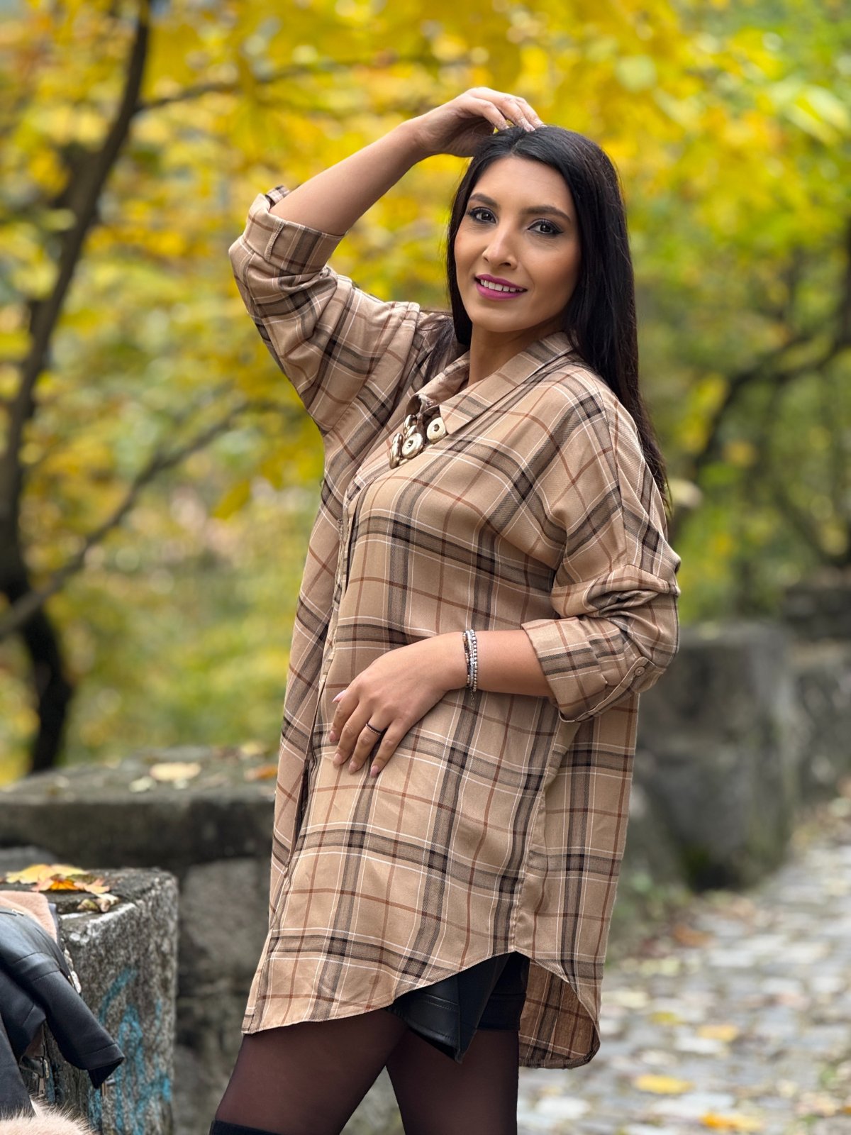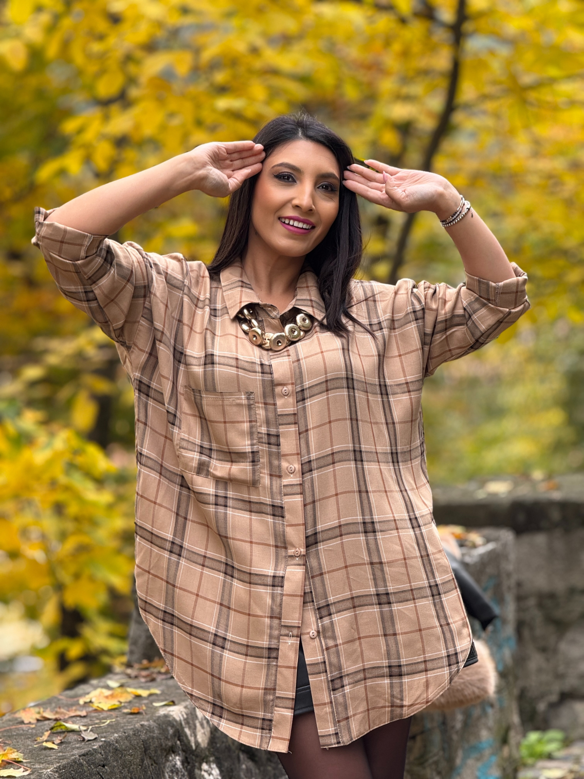 Camasa in carouri cu guler si buzunar