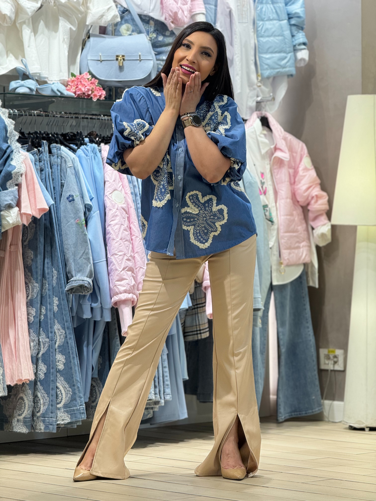 • Camasa tip denim cu broderie
