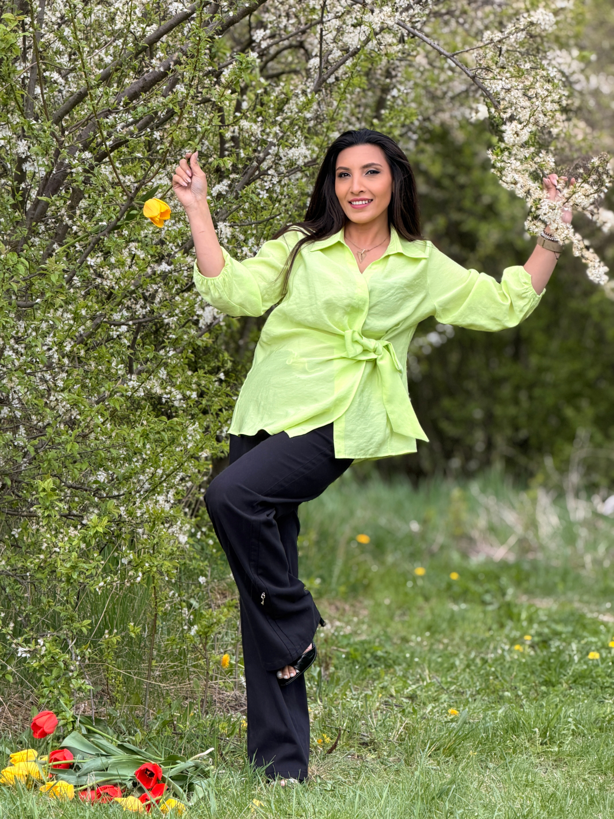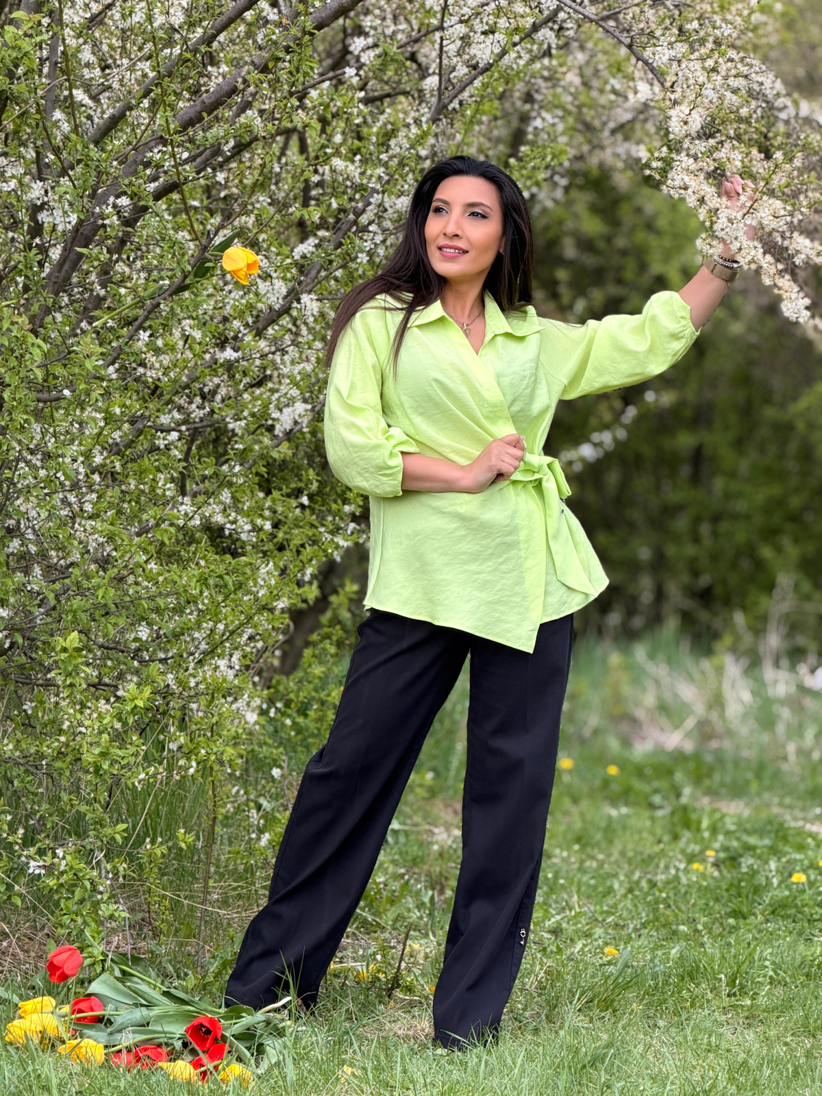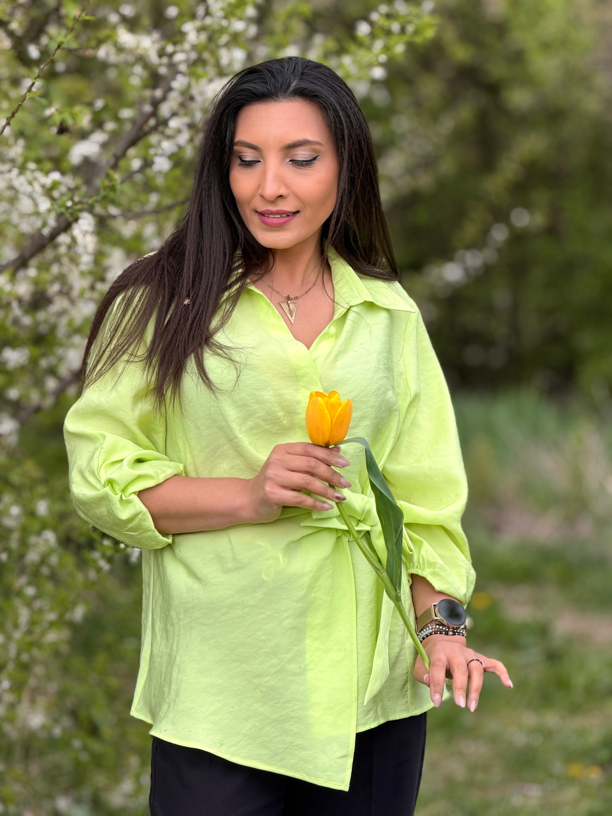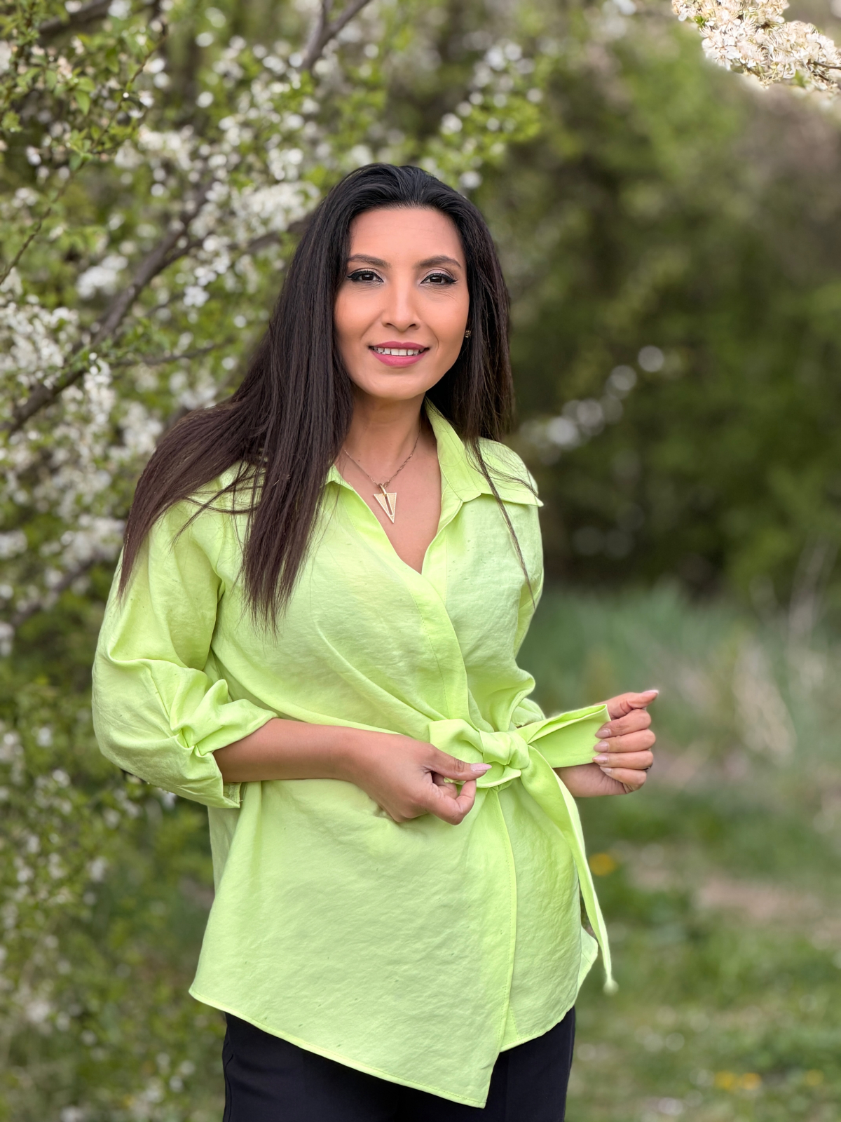 Simte-te liberă și confortabilă în această cămașă cu nod frontal, perfectă pentru orice ocazie.