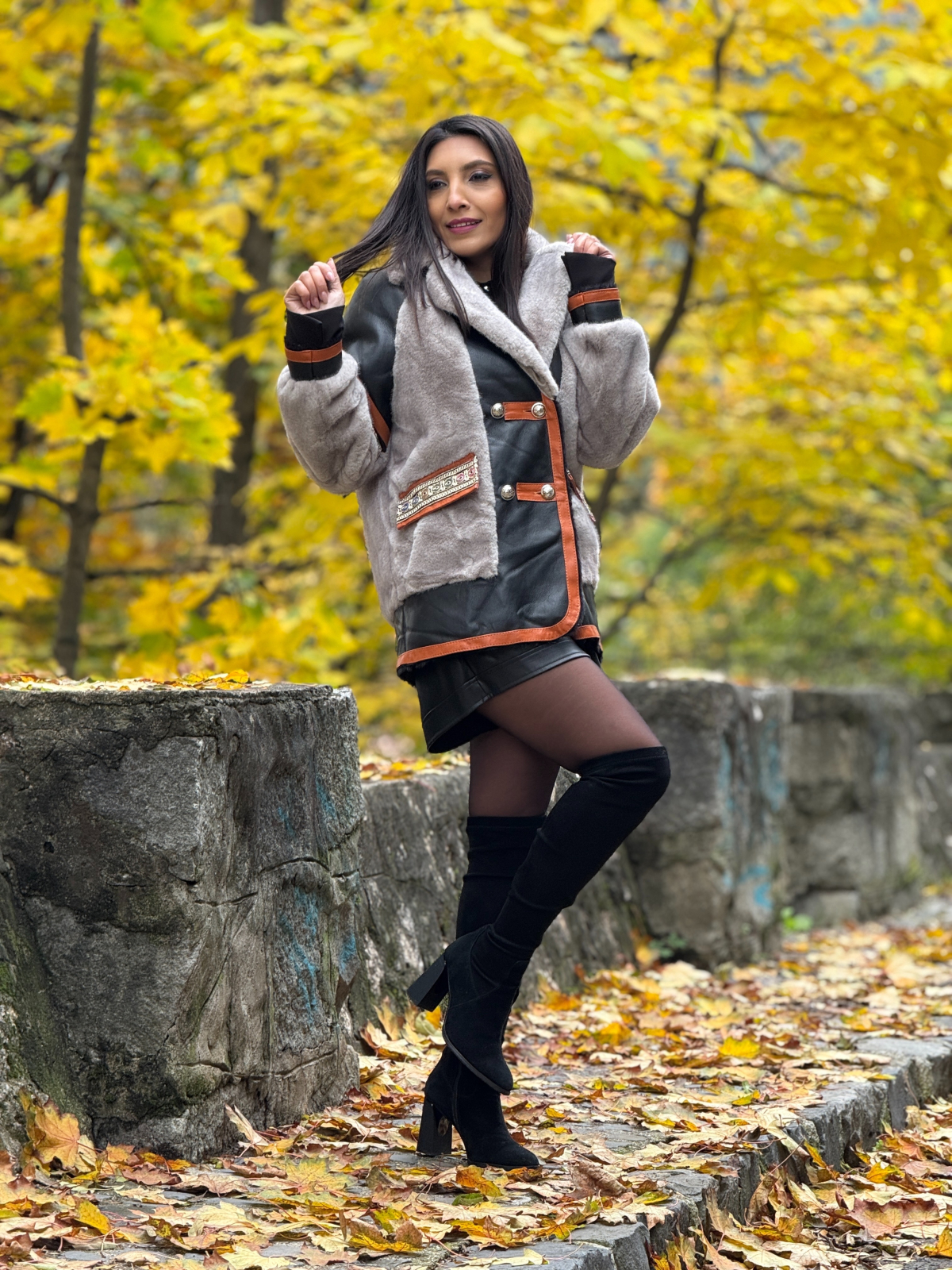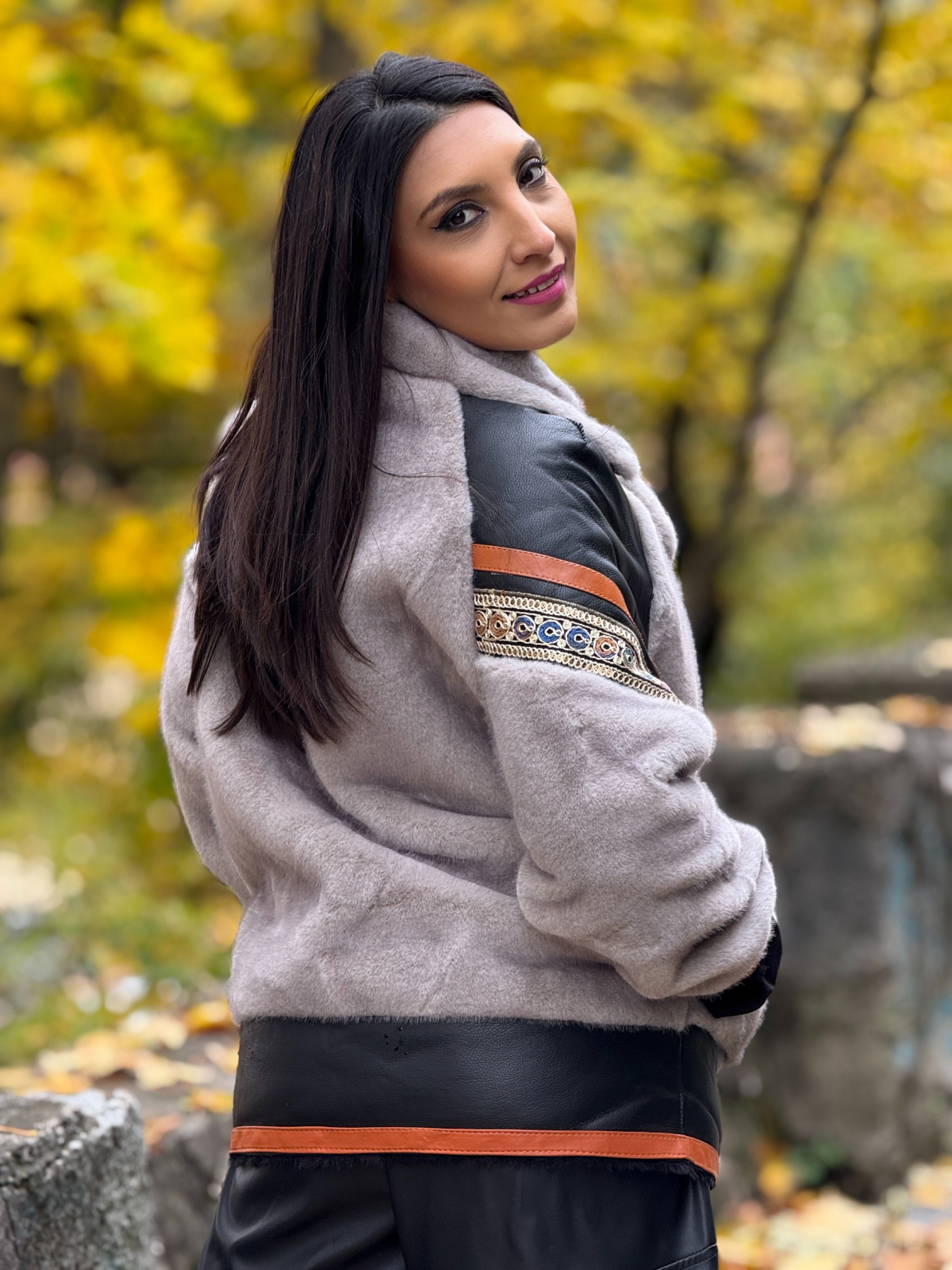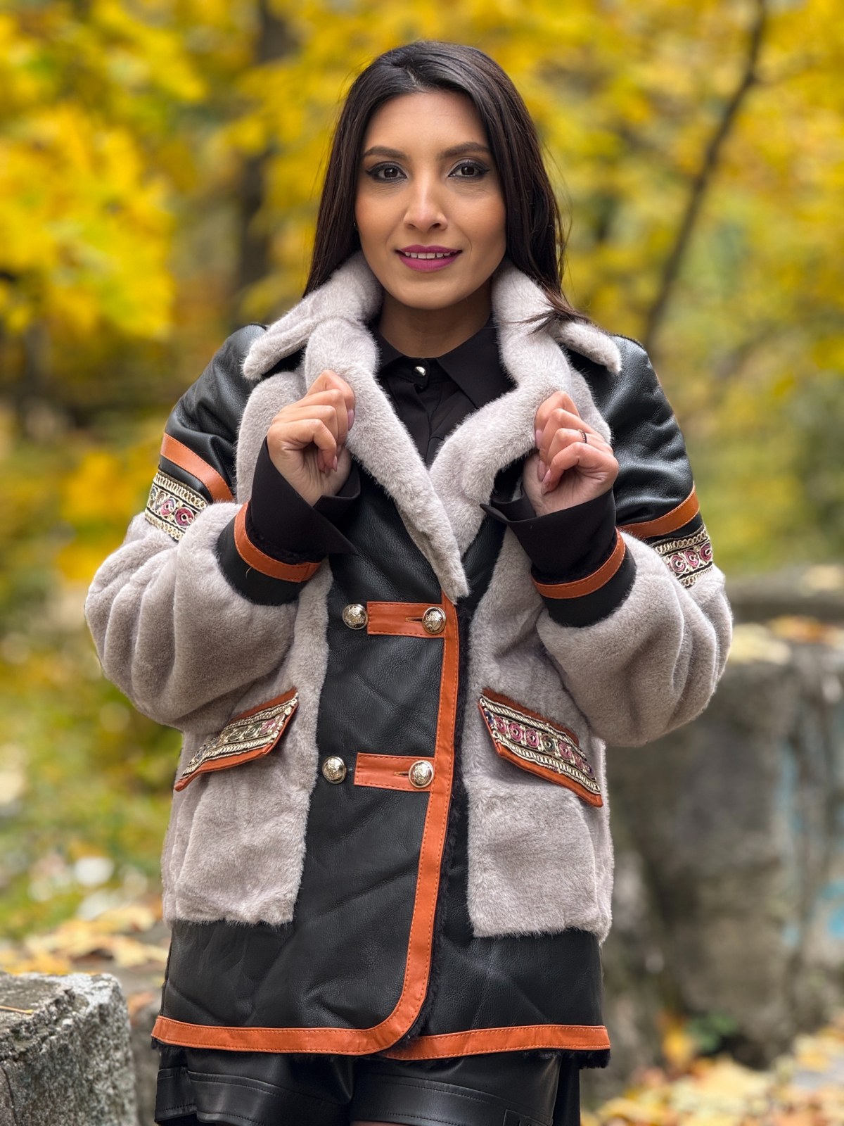 Haina din blana artificiala si piele ecologica cu detalii decorative