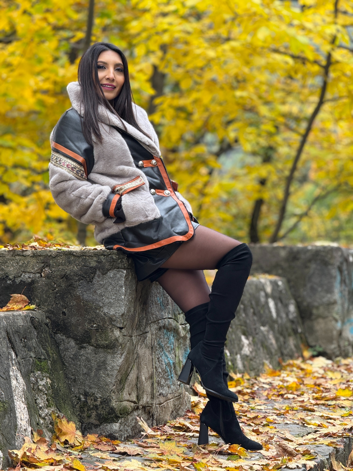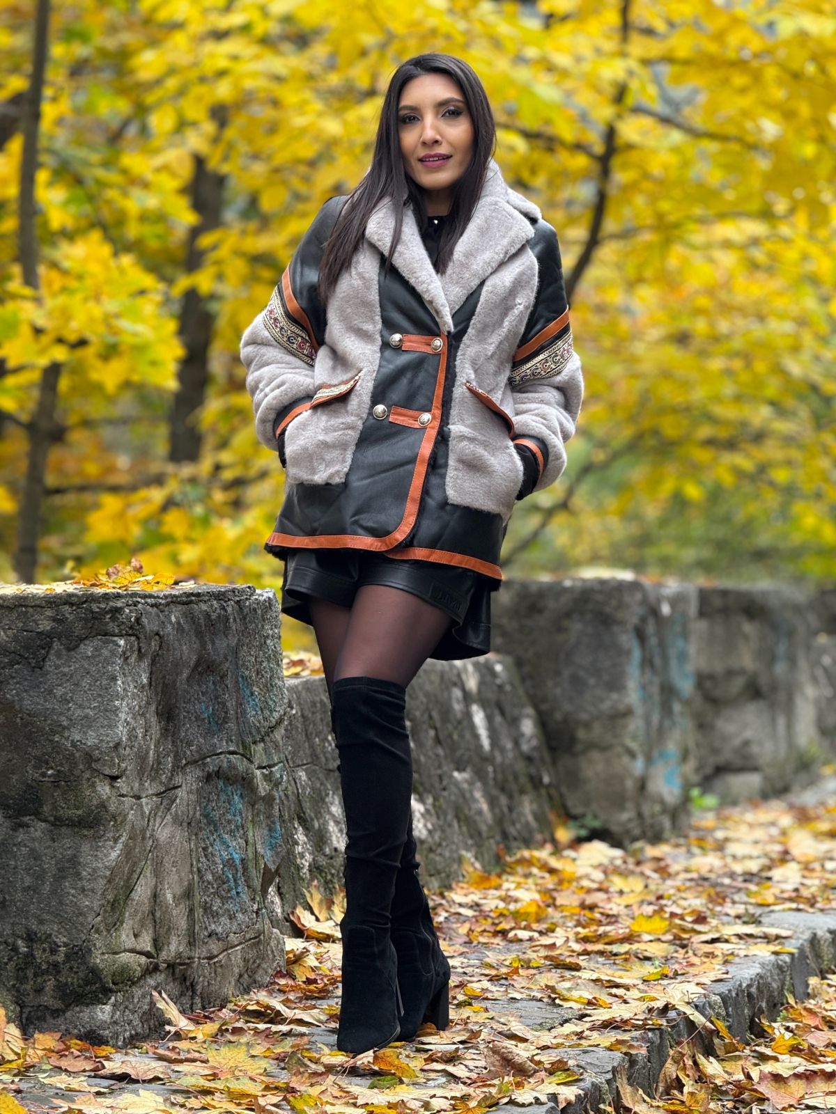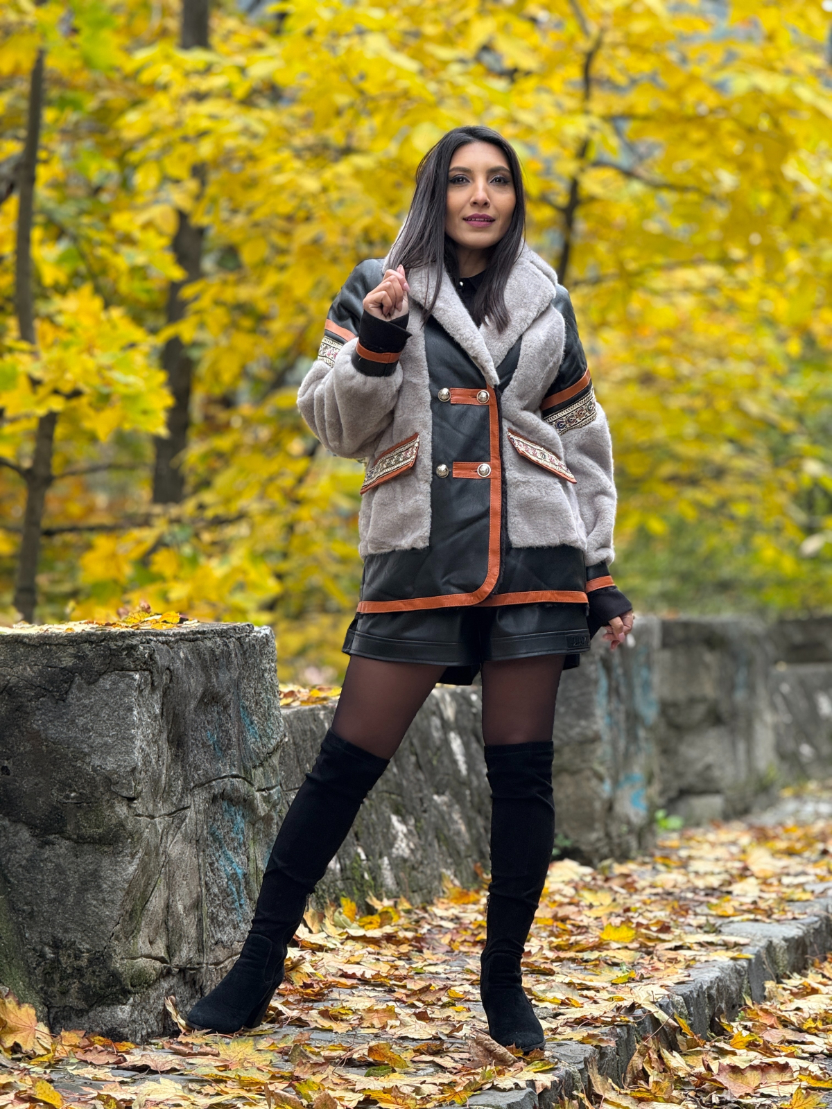 Haina din blana artificiala si piele ecologica cu detalii decorative