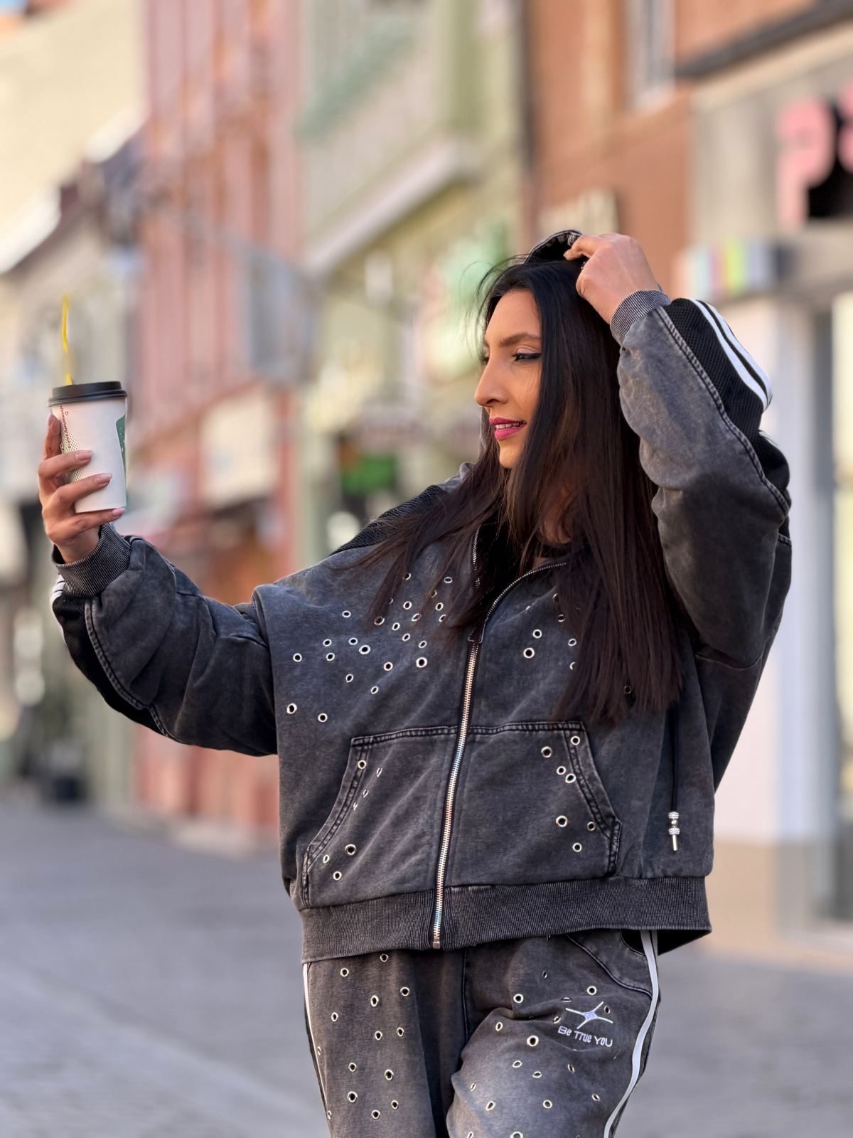 Simte-te liberă să explorezi orașul în jacheta noastră cu capse și glugă. Este expresia perfectă a confortului urban combinat cu un stil modern și atractiv.