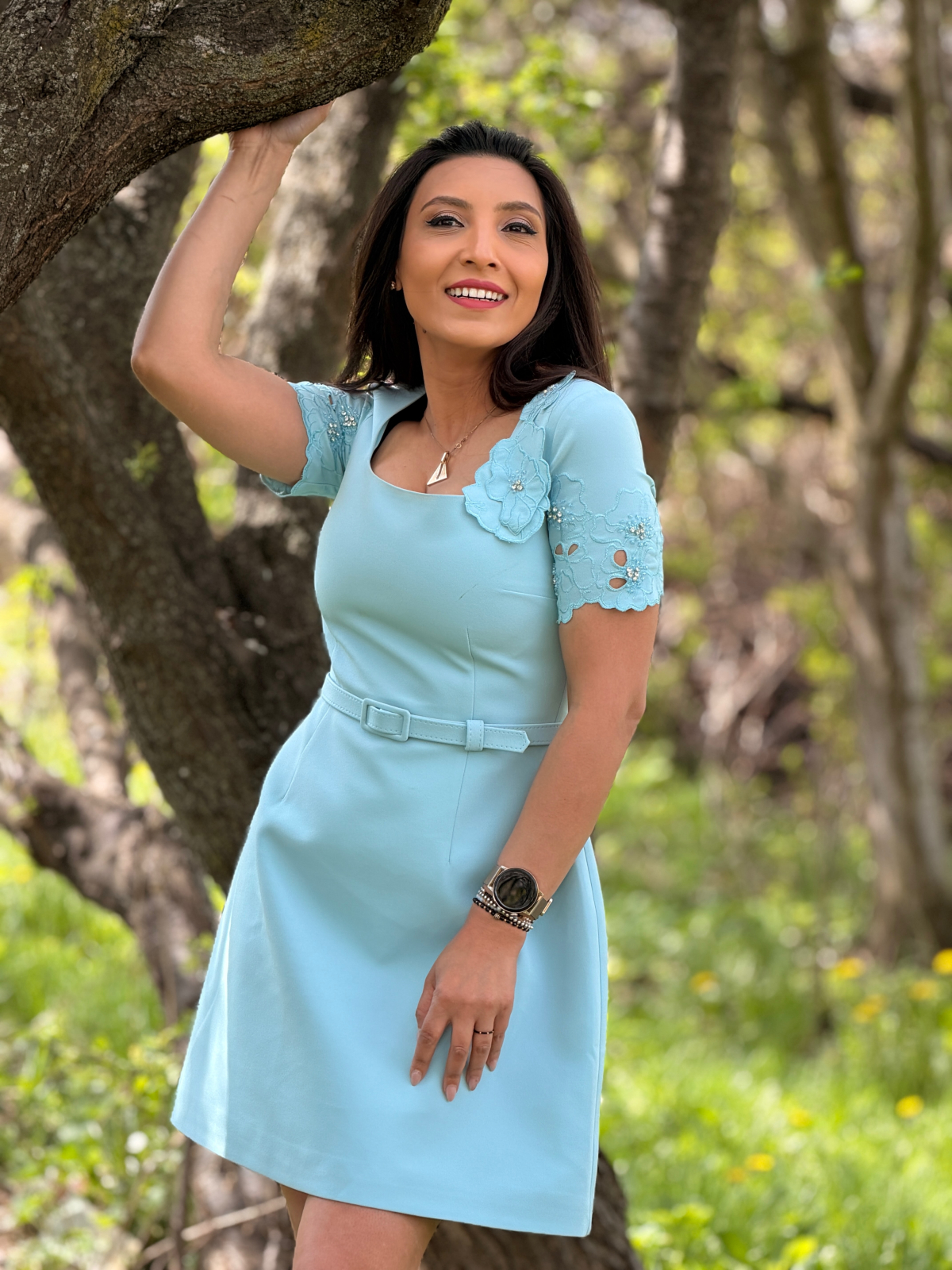Croiala precisă și aplicatiile florale adaugă un plus de sofisticare, oferindu-ți lejeritate și grație în mișcări.