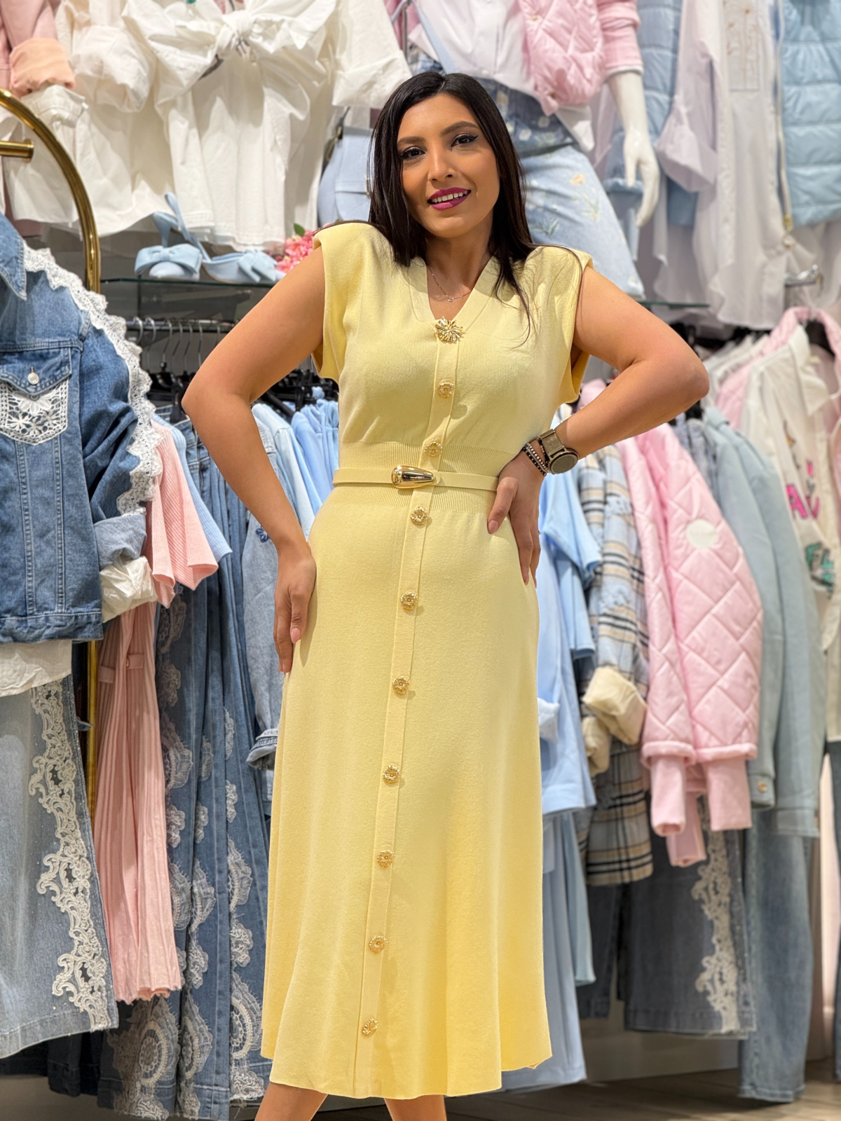 Descoperă echilibrul perfect între eleganță și confort cu această rochie din tricot fin, creată pentru a te face să te simți liberă și încrezătoare.
